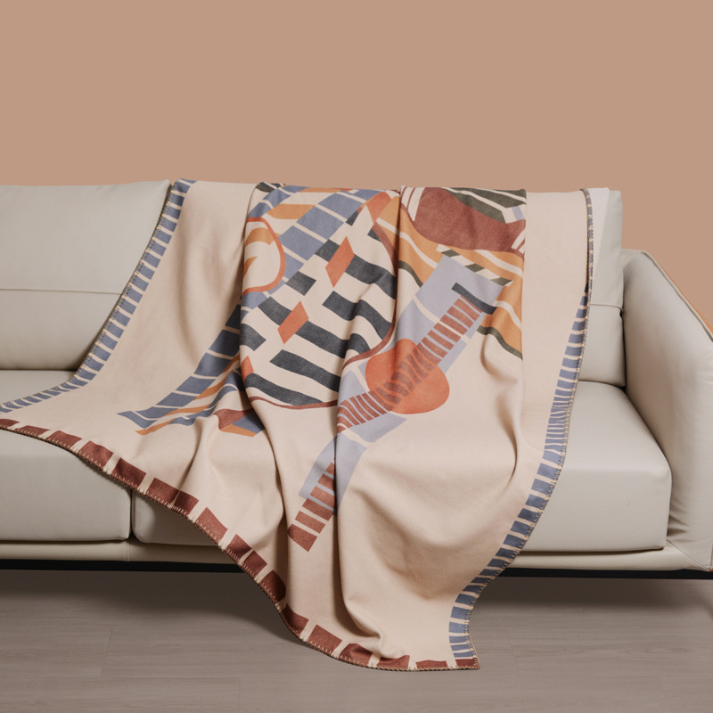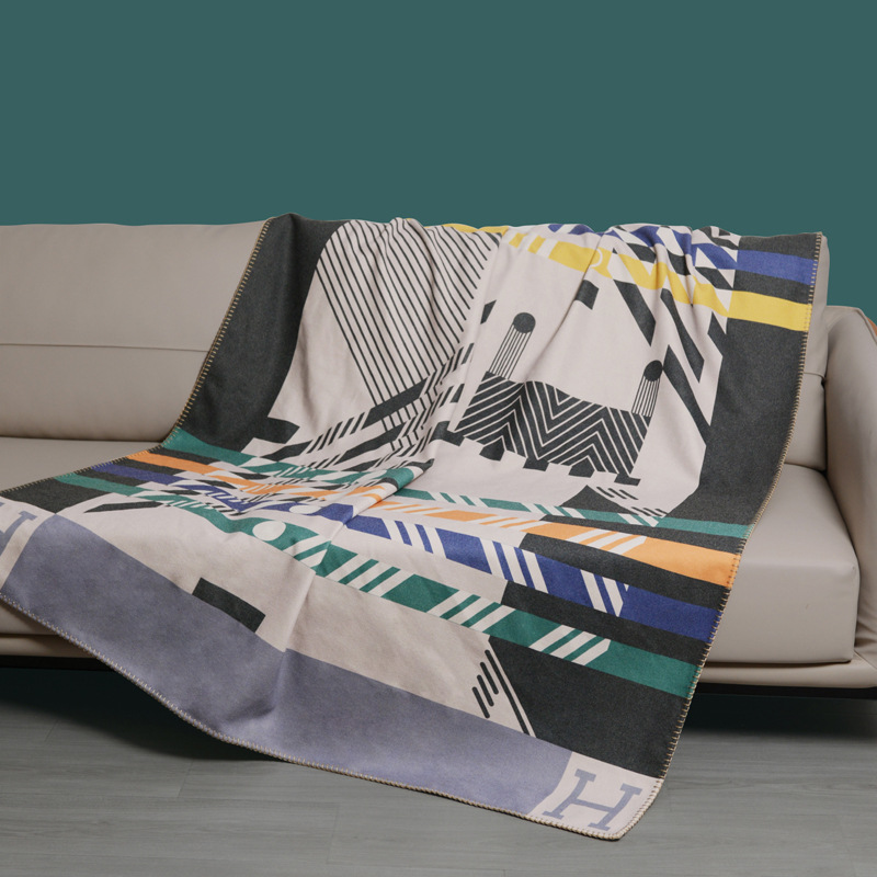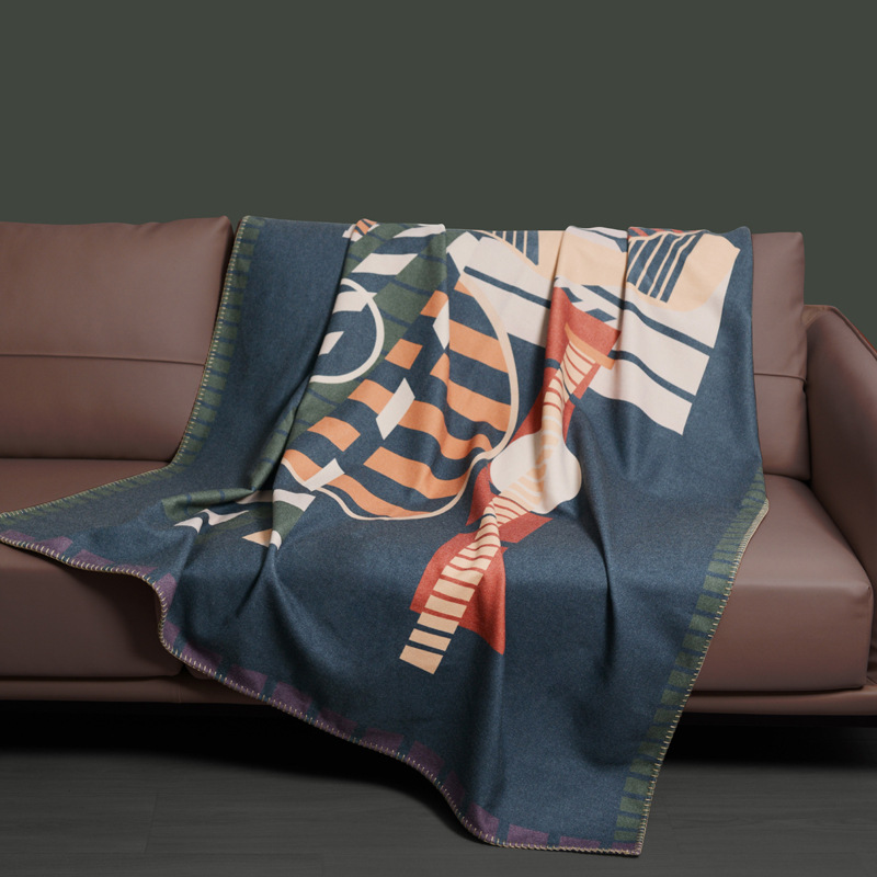 가벼운 럭셔리 인쇄 소파 담요 사무실 에어컨 숄 얇은 담요 모직 낮잠 담요 고급 선물 담요