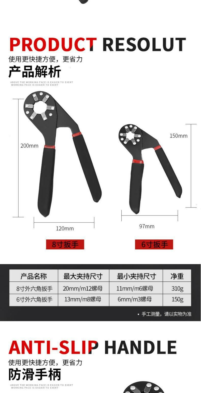 매직 렌치 조정 다목적 렌치 다목적 렌치 조정 가능한 렌치 토크 렌치는 외부 육각형을 클램프 할 수 있습니다