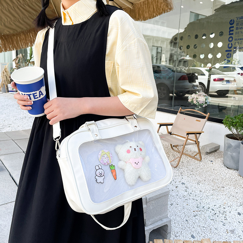 일본 jk 유니폼 가방 귀여운 캐주얼 투명 부드러운 소녀 학생 어깨 통증 가방 아기 가방 휴대용 메신저 가방