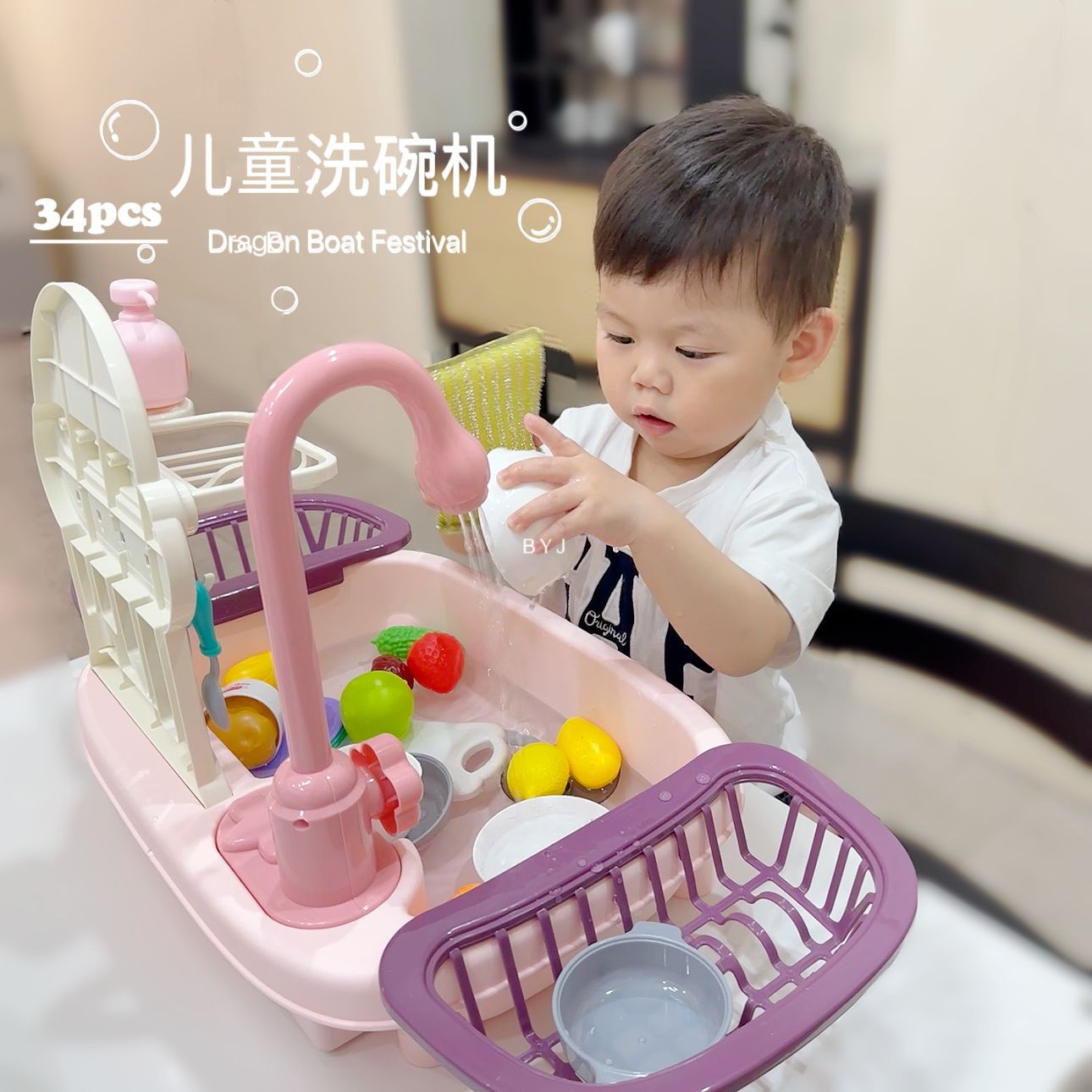크로스 국경 새로운 어린이 전기 식기 세척기 대형 Coolhouse 조리기구 수영장 테이블 배수 주방 세트 장난감스토어 가기