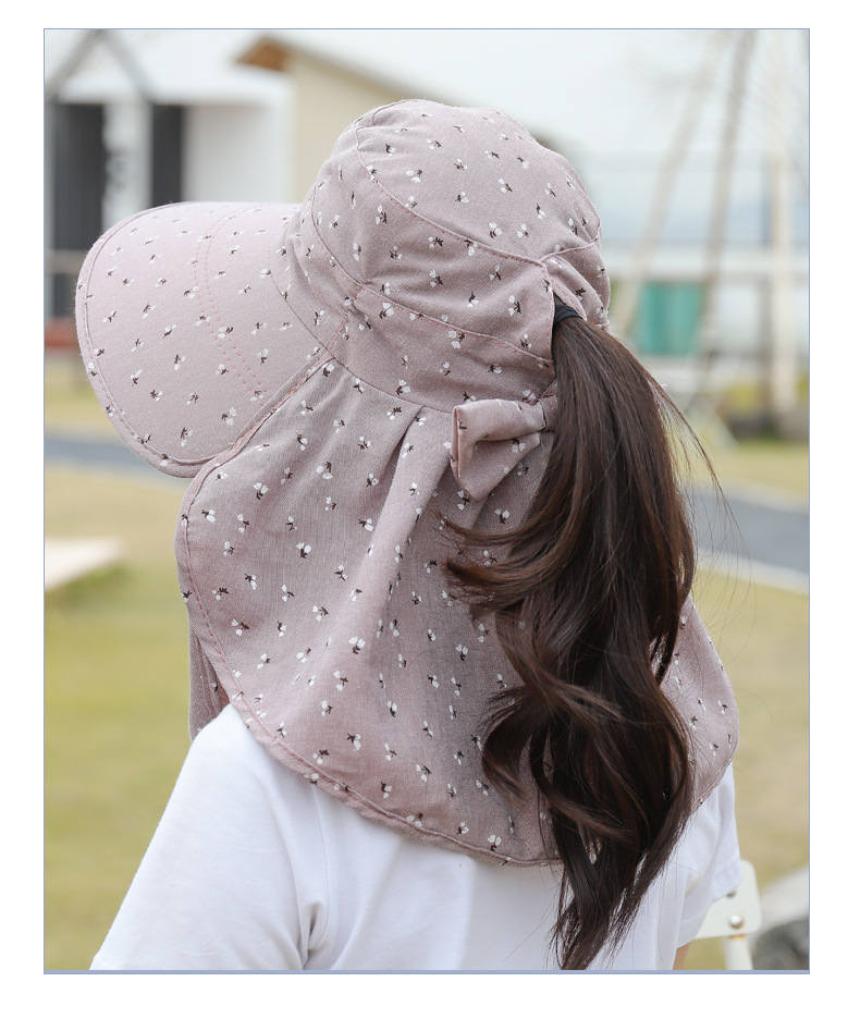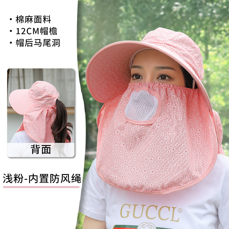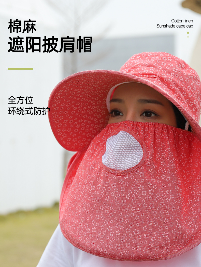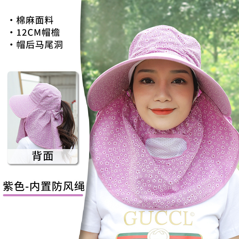 얼굴을 가리는 목 보호 여름 여성용 면 및 린넨 어부 모자 야외 통기성 건식 농사 태양 보호 차 따기 모자