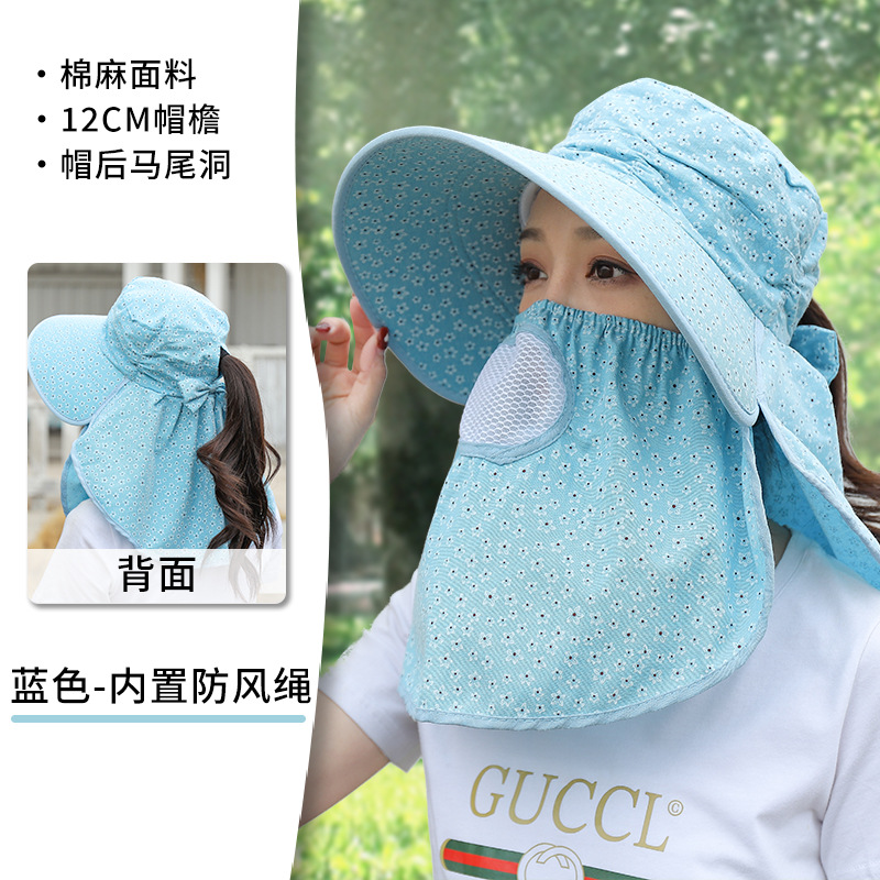 얼굴을 가리는 목 보호 여름 여성용 면 및 린넨 어부 모자 야외 통기성 건식 농사 태양 보호 차 따기 모자스토어 가기