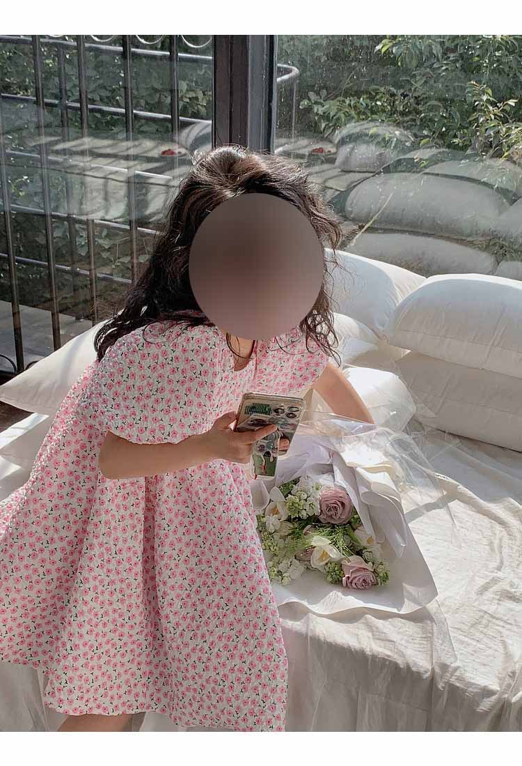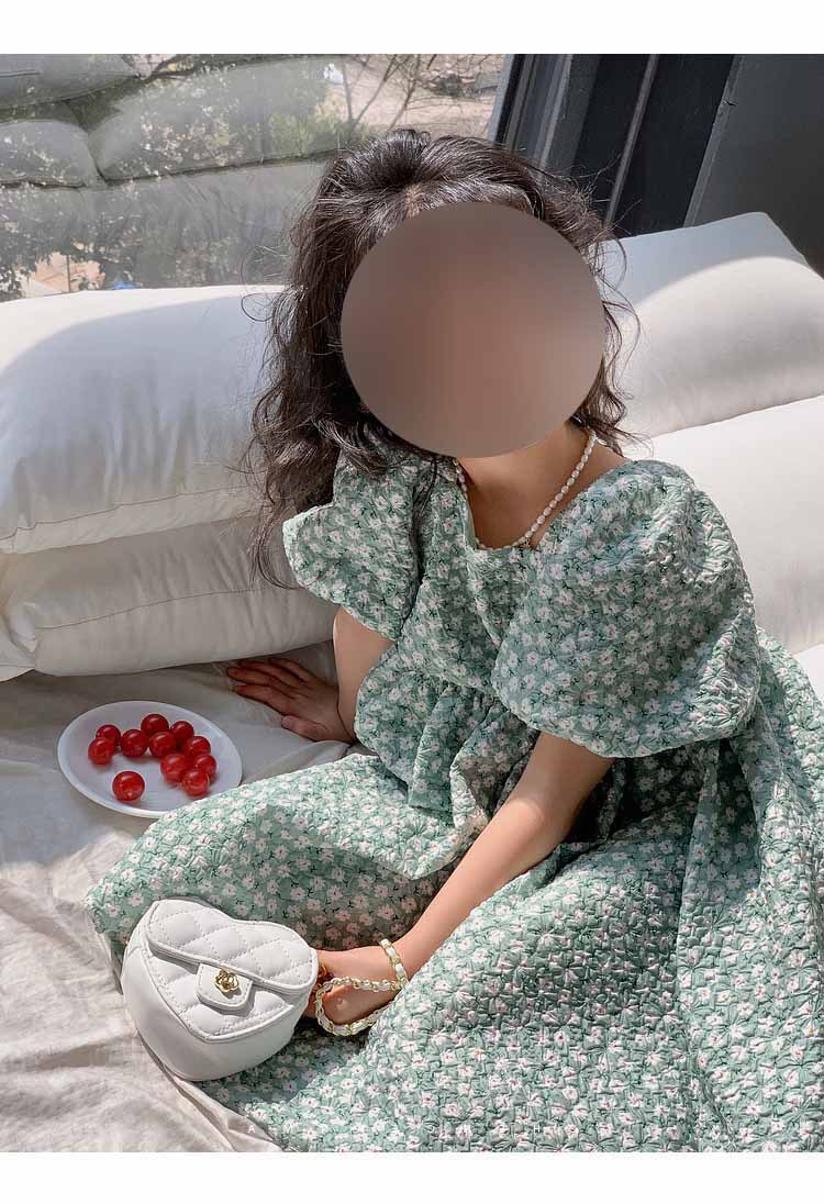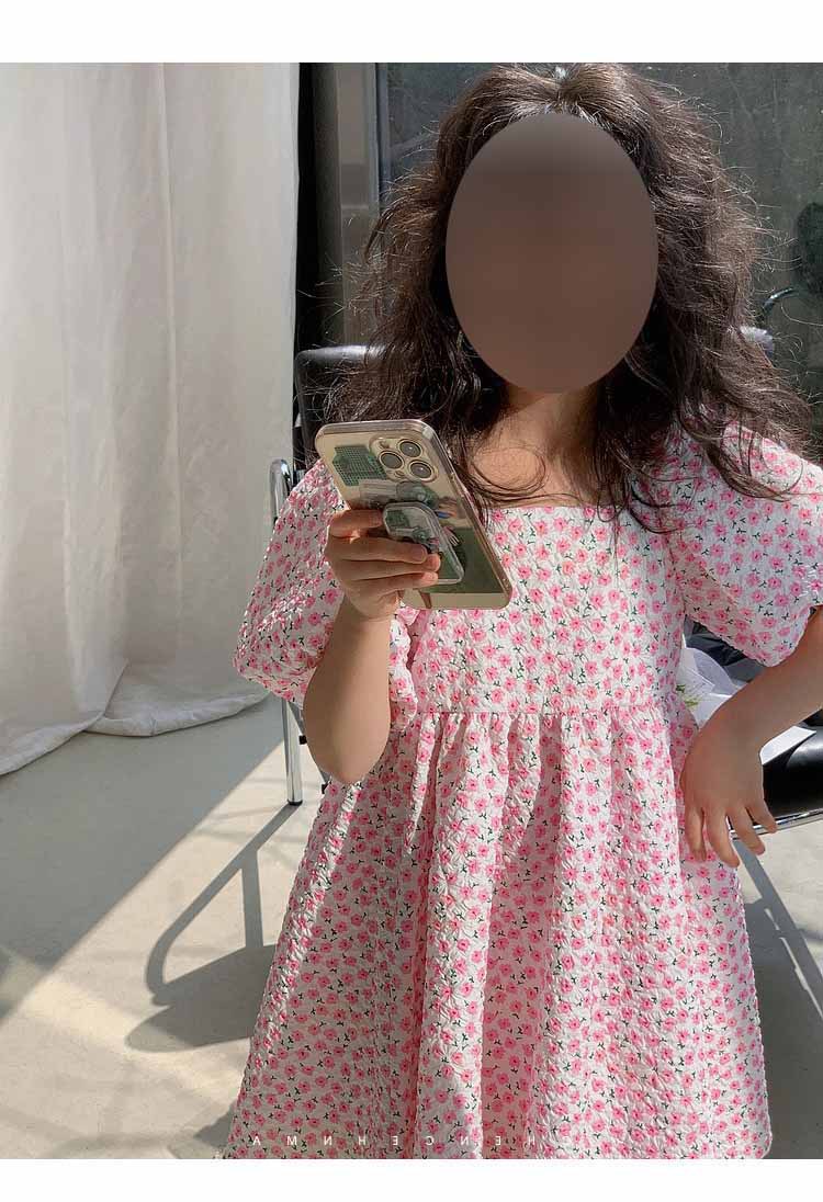 소녀 거품 소매 원피스 여름 새로운 여성 아기 외국 스타일 작은 꽃 공주 치마 어린이 머리카락의 세대스토어 가기