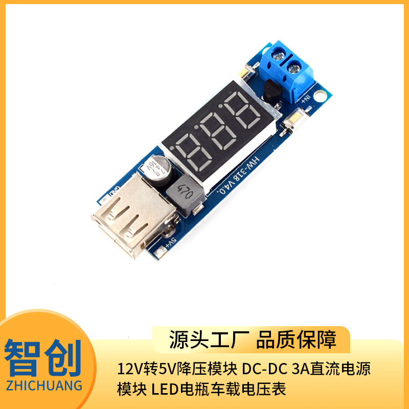 12V 5V 스텝 다운 모듈 DC-DC 3A DC 전원 모듈 LED 배터리 자동차 전압계