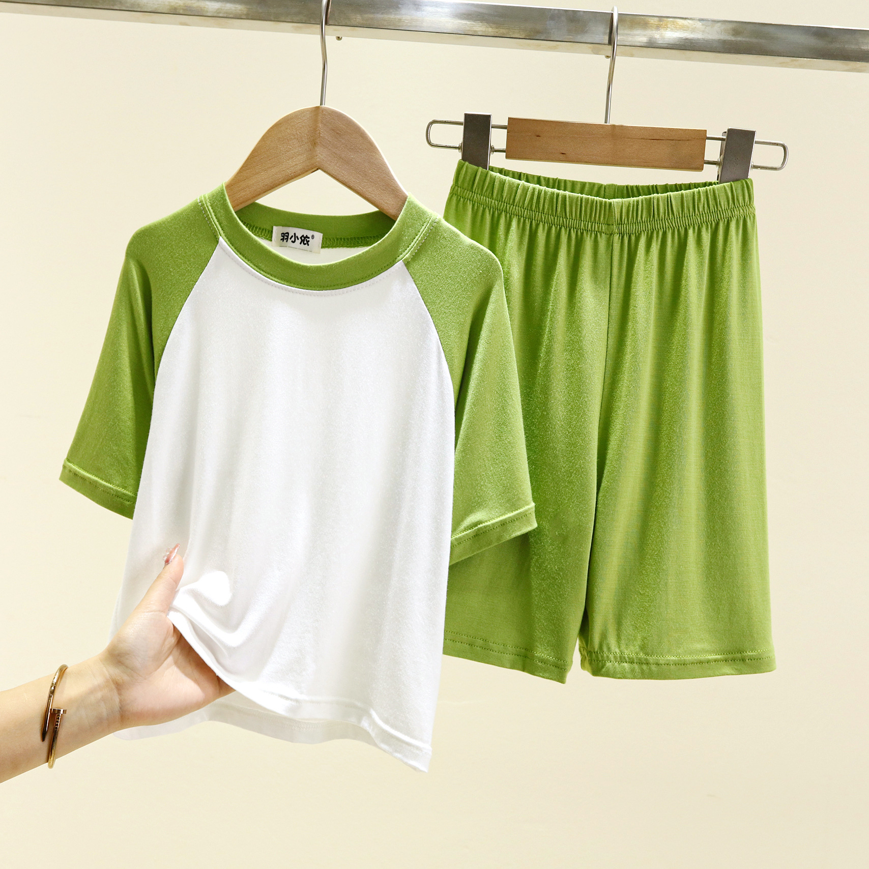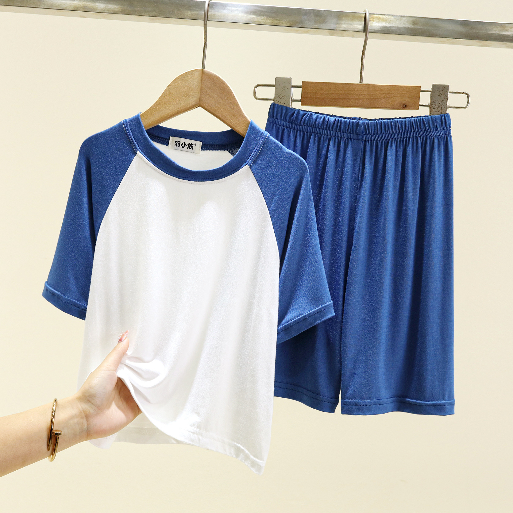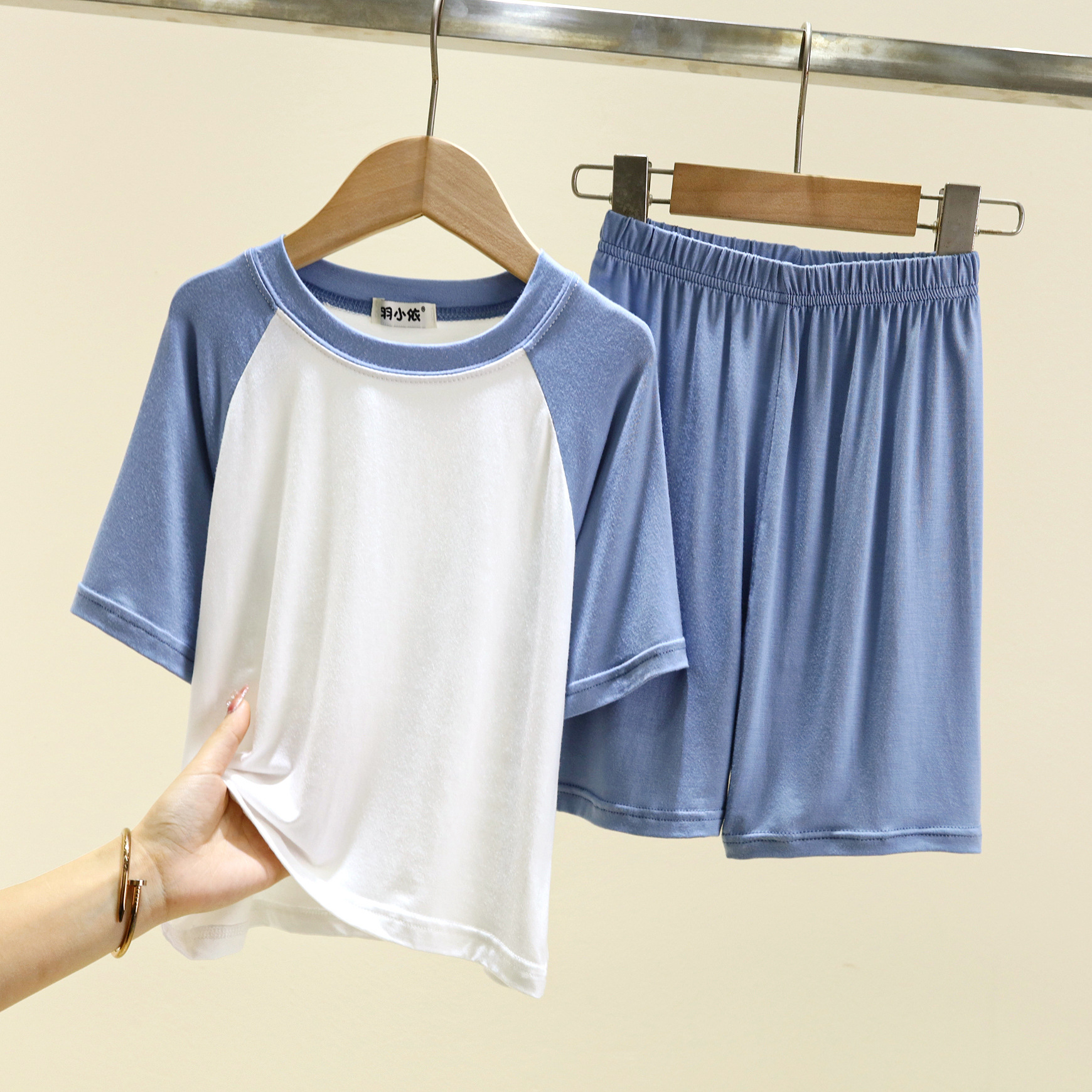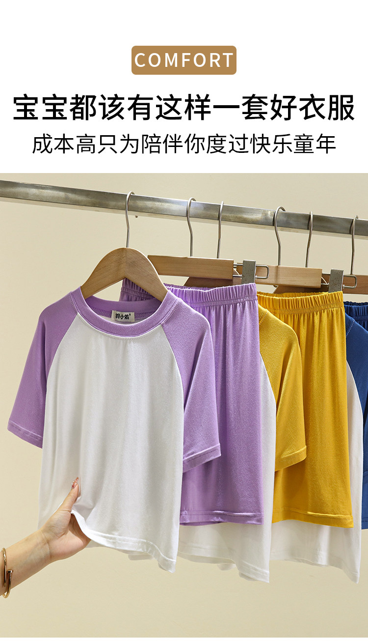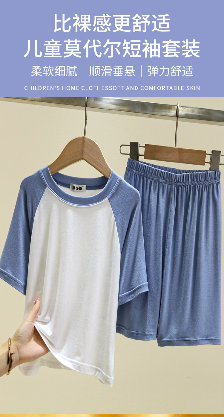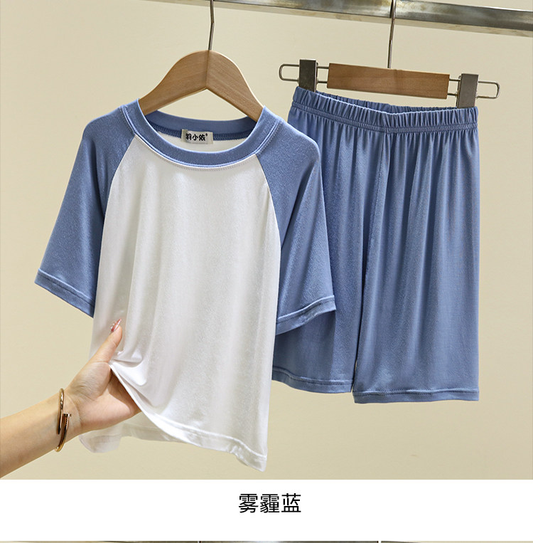 여름 소년 잠옷 투피스 세트 얇은 모달 어린이 아기 가정복 느슨한 중형 및 대형 어린이 반팔 세트스토어 가기