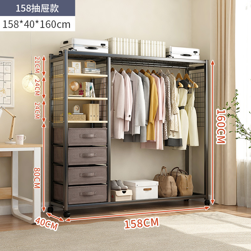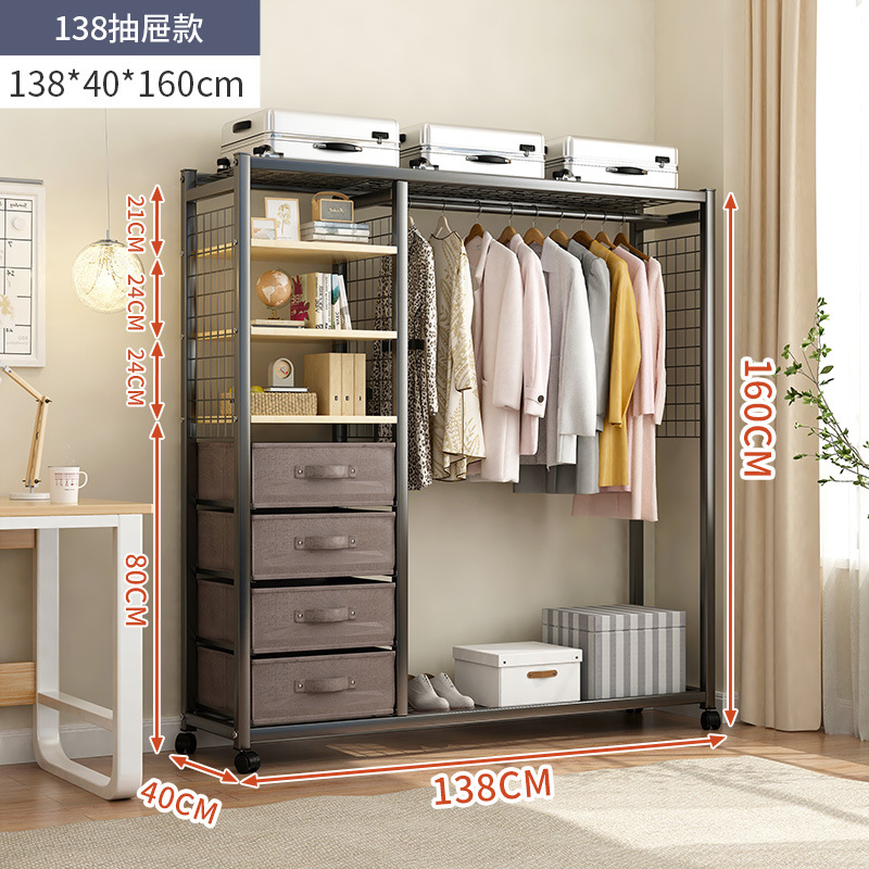 • [폭 138cm] 서랍 이동식 행거 (클래식 블랙)