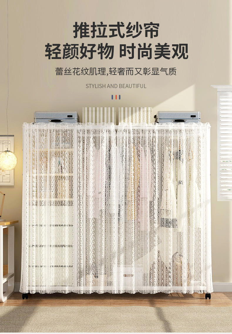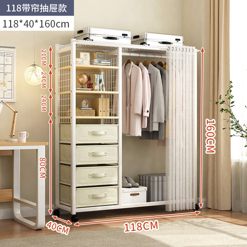 • [폭 118cm] 거즈 커튼 + 서랍 이동식 행거 (클래식 화이트)