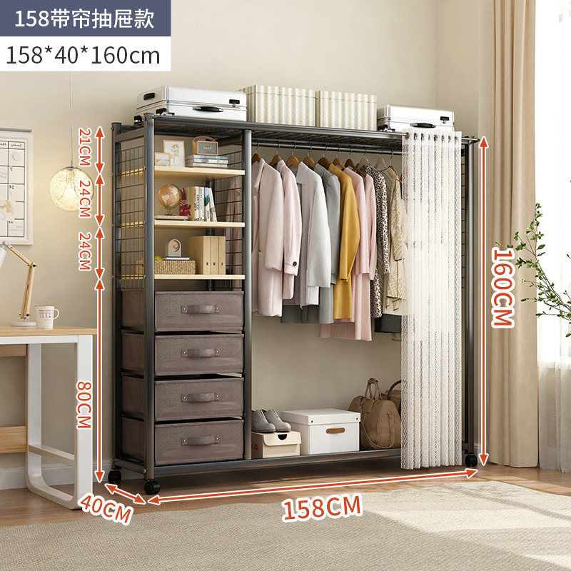 • [폭 158cm] 거즈 커튼 + 서랍 이동식 행거 (클래식 블랙)