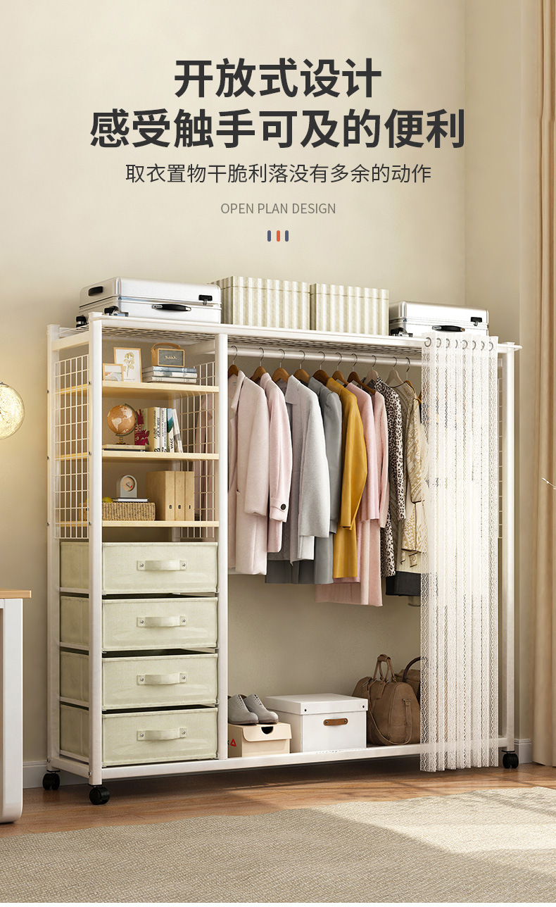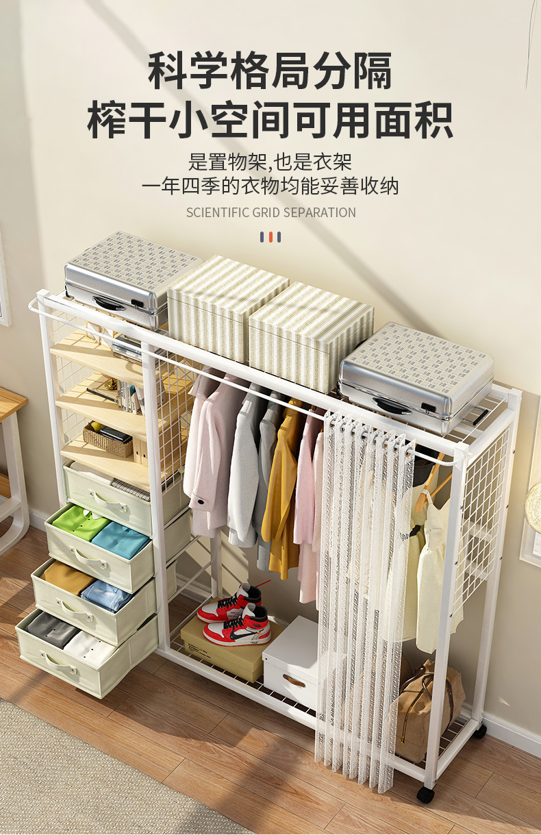 옷걸이 바닥 침실 걸이 이동식 바퀴 달린 가정용 거실 인터넷 인기 조명 럭셔리 옷걸이 간단한 코트 랙