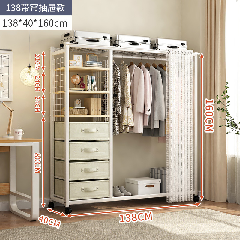 • [폭 138cm] 거즈 커튼 + 서랍 이동식 행거 (클래식 화이트)