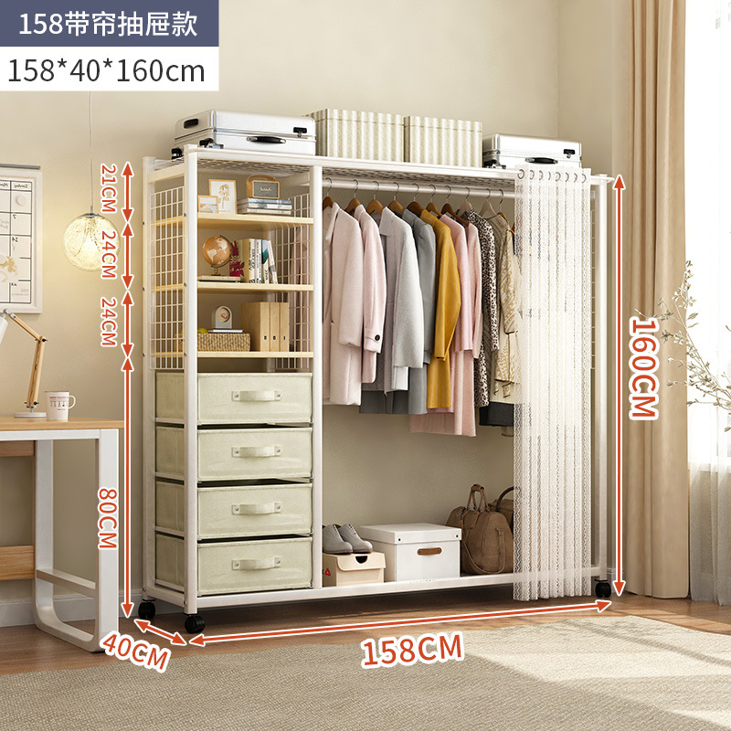 • [폭 158cm] 거즈 커튼 + 서랍 이동식 행거 (클래식 화이트)