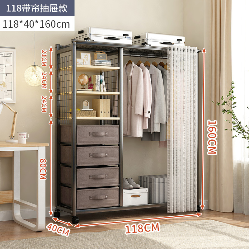 • [폭 118cm] 거즈 커튼 + 서랍 이동식 행거 (클래식 블랙)