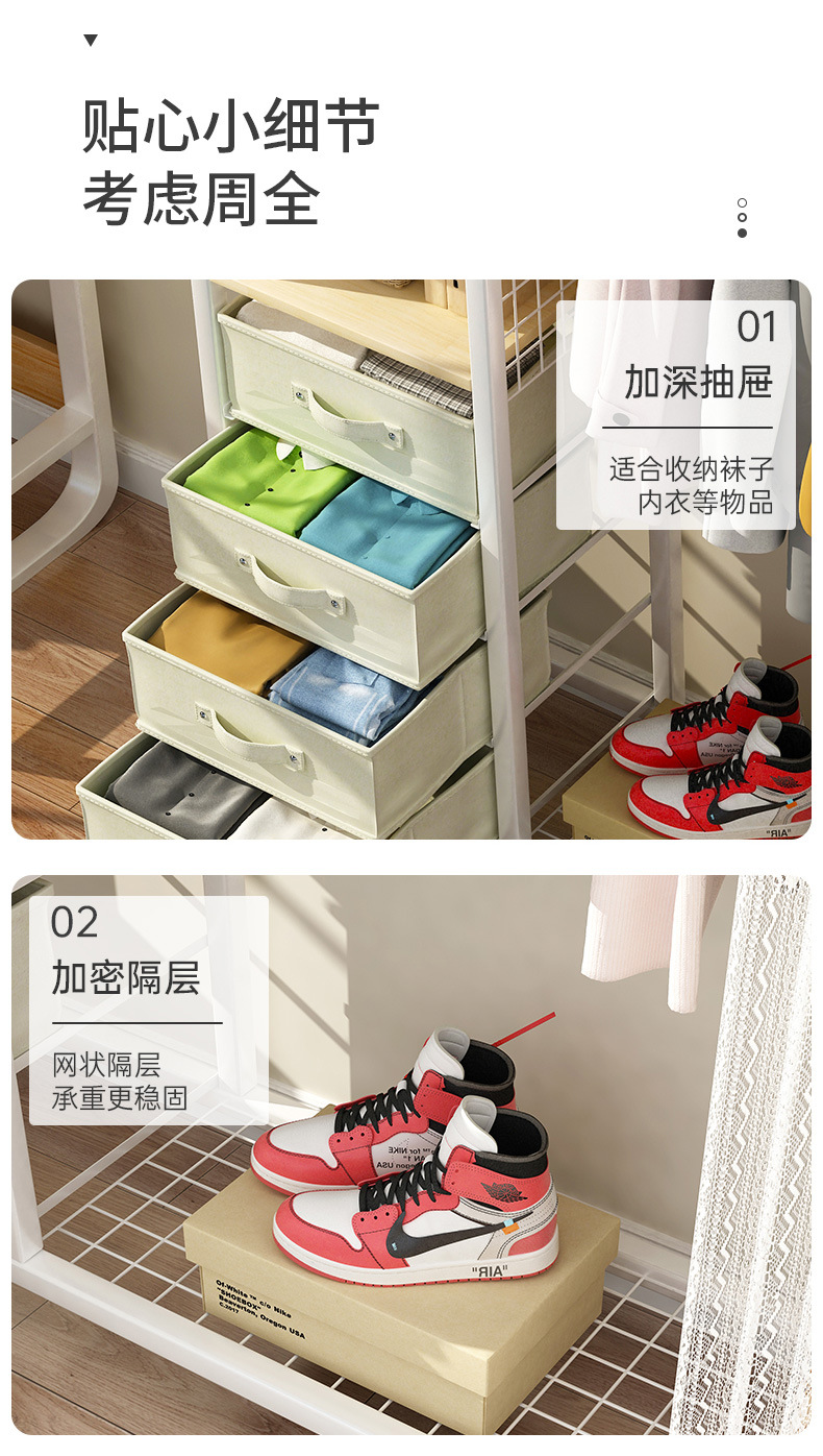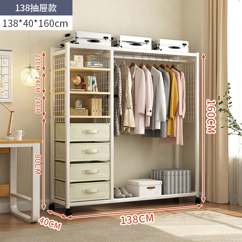 • [폭 138cm] 서랍 이동식 행거 (클래식 화이트)