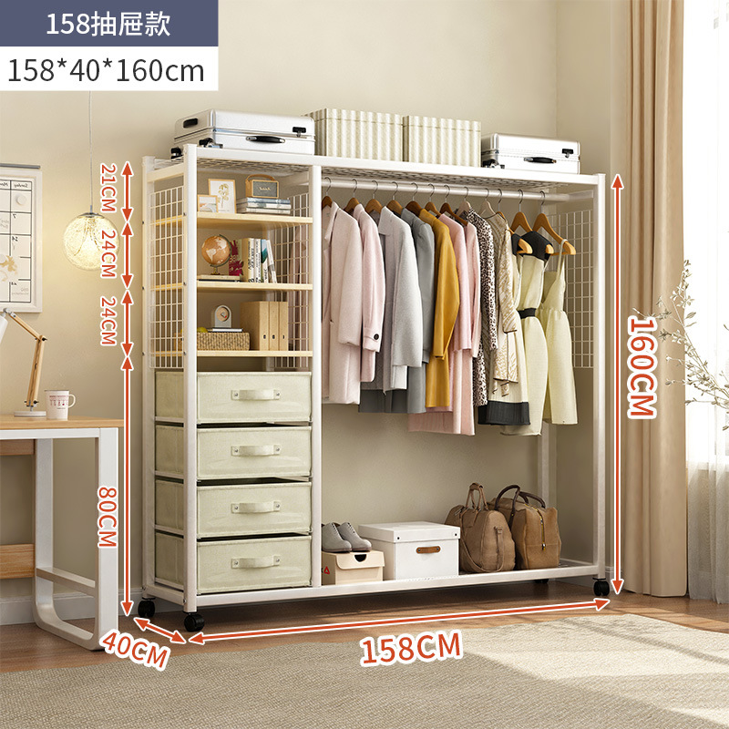 • [폭 158cm] 서랍 이동식 행거 (클래식 화이트)