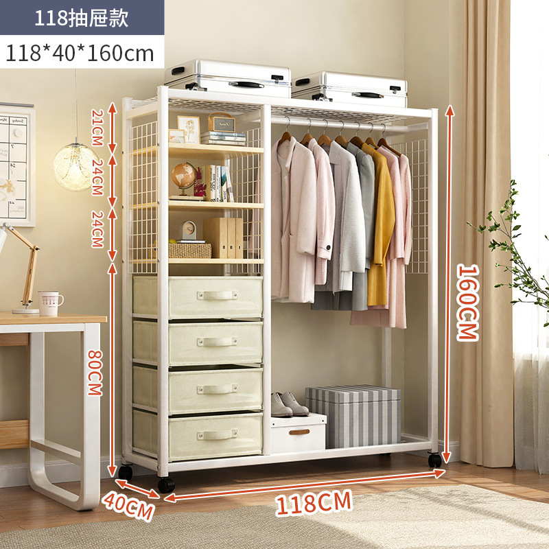 • [폭 118cm] 서랍 이동식 행거 (클래식 화이트)