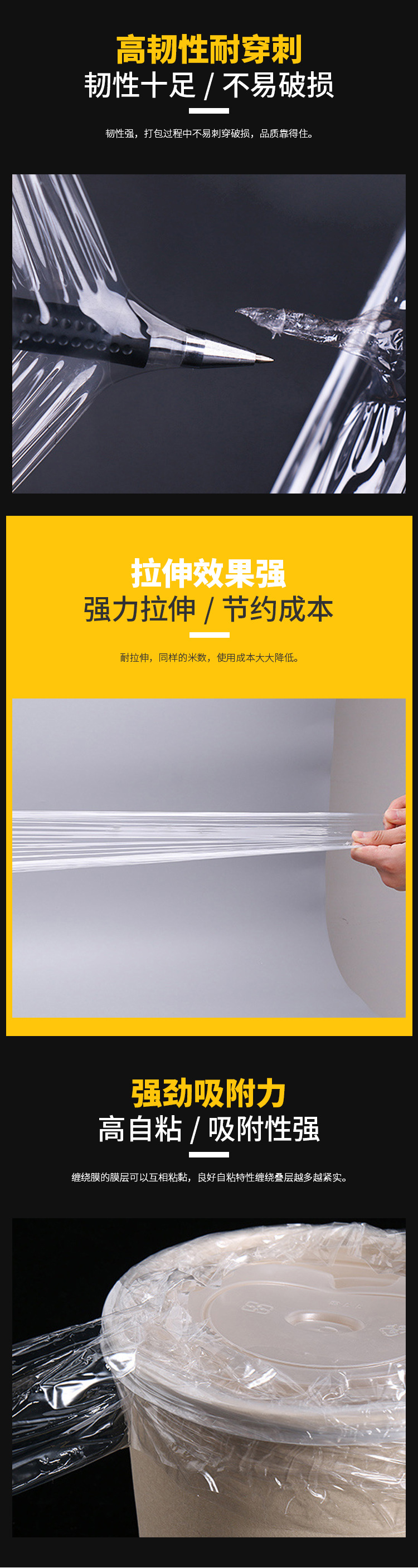 공장 도매 PE 포장 필름 50cm 팔레트 포장 투명 스트레치 필름 자체 접착 플라스틱 필름 산업용 집착 필름스토어 가기