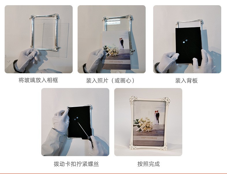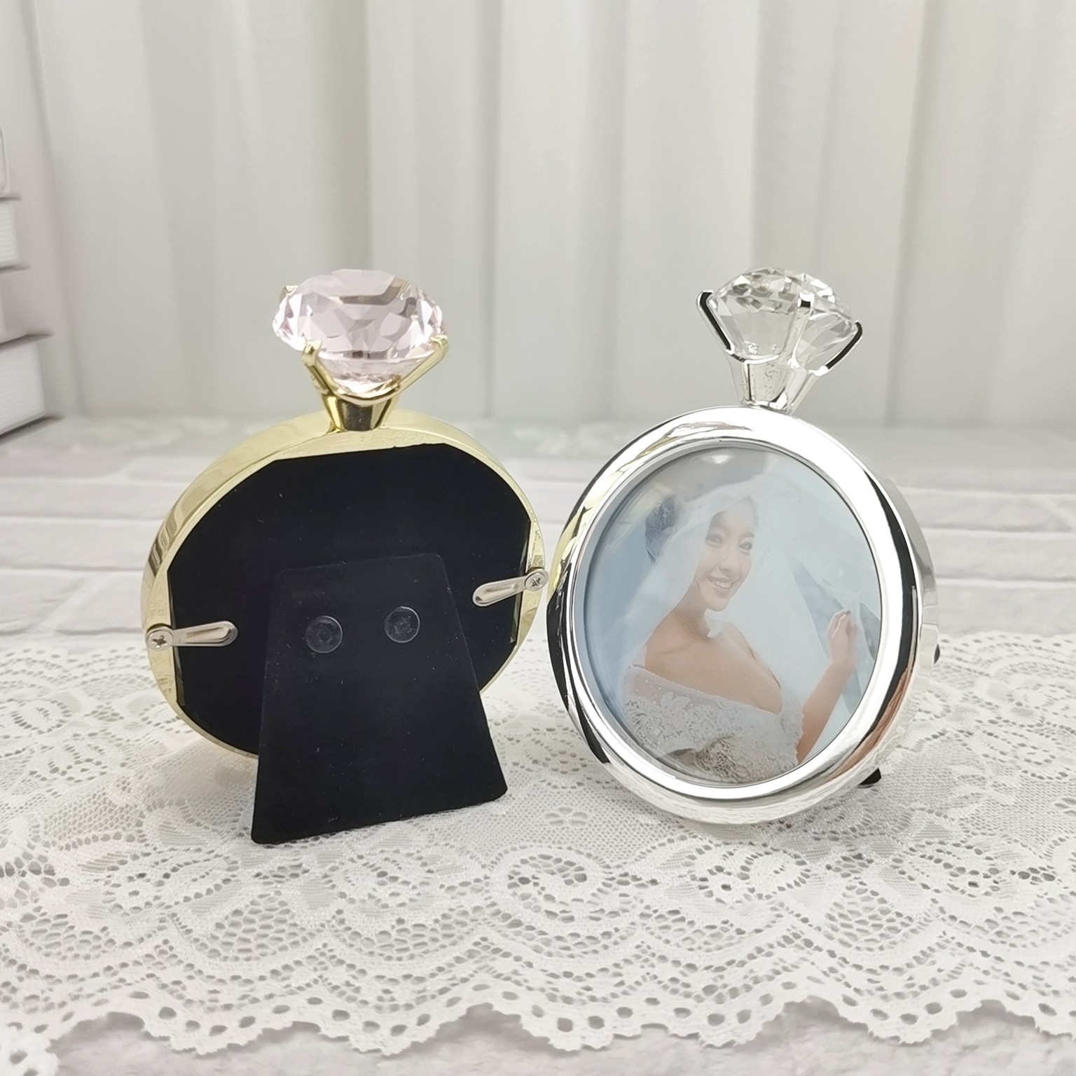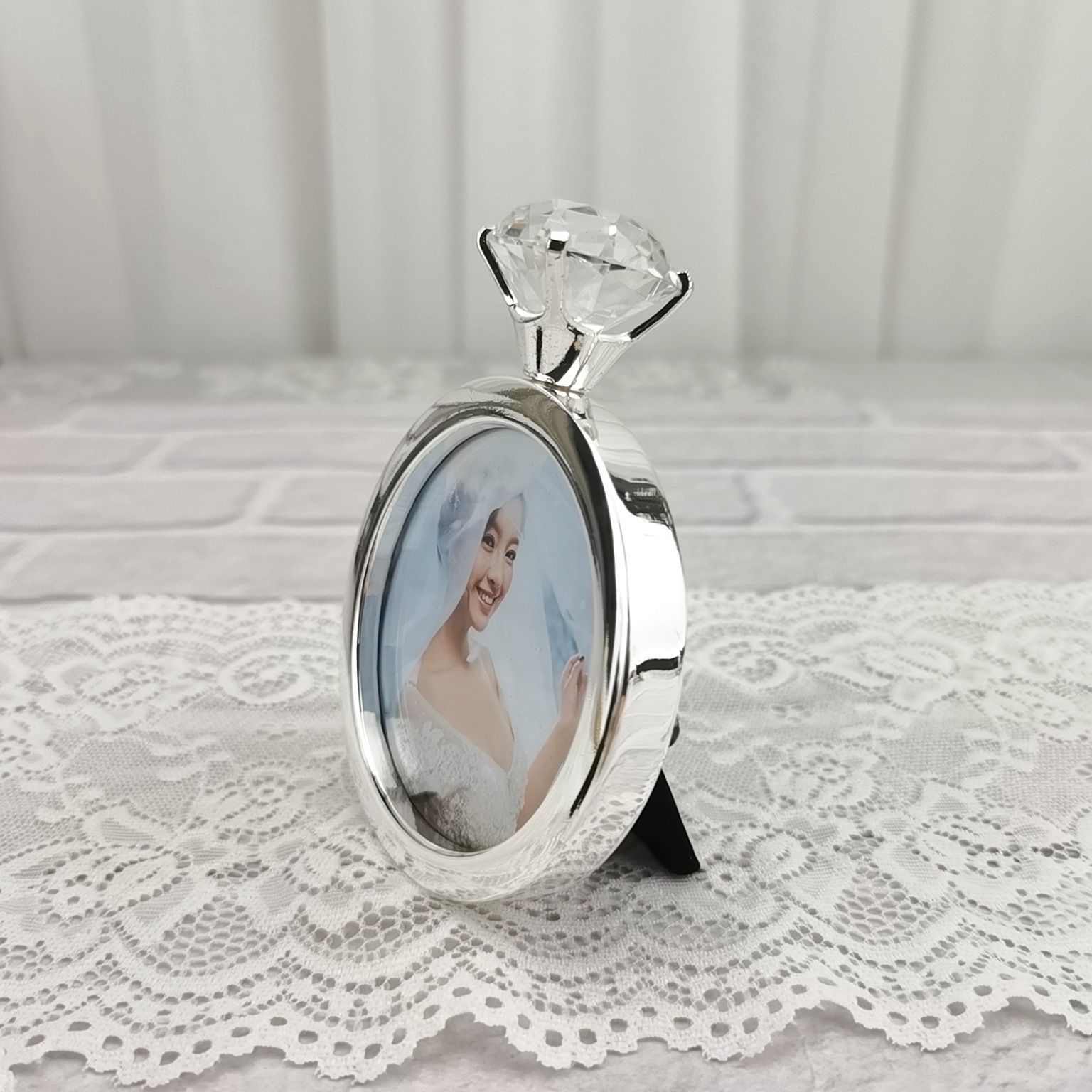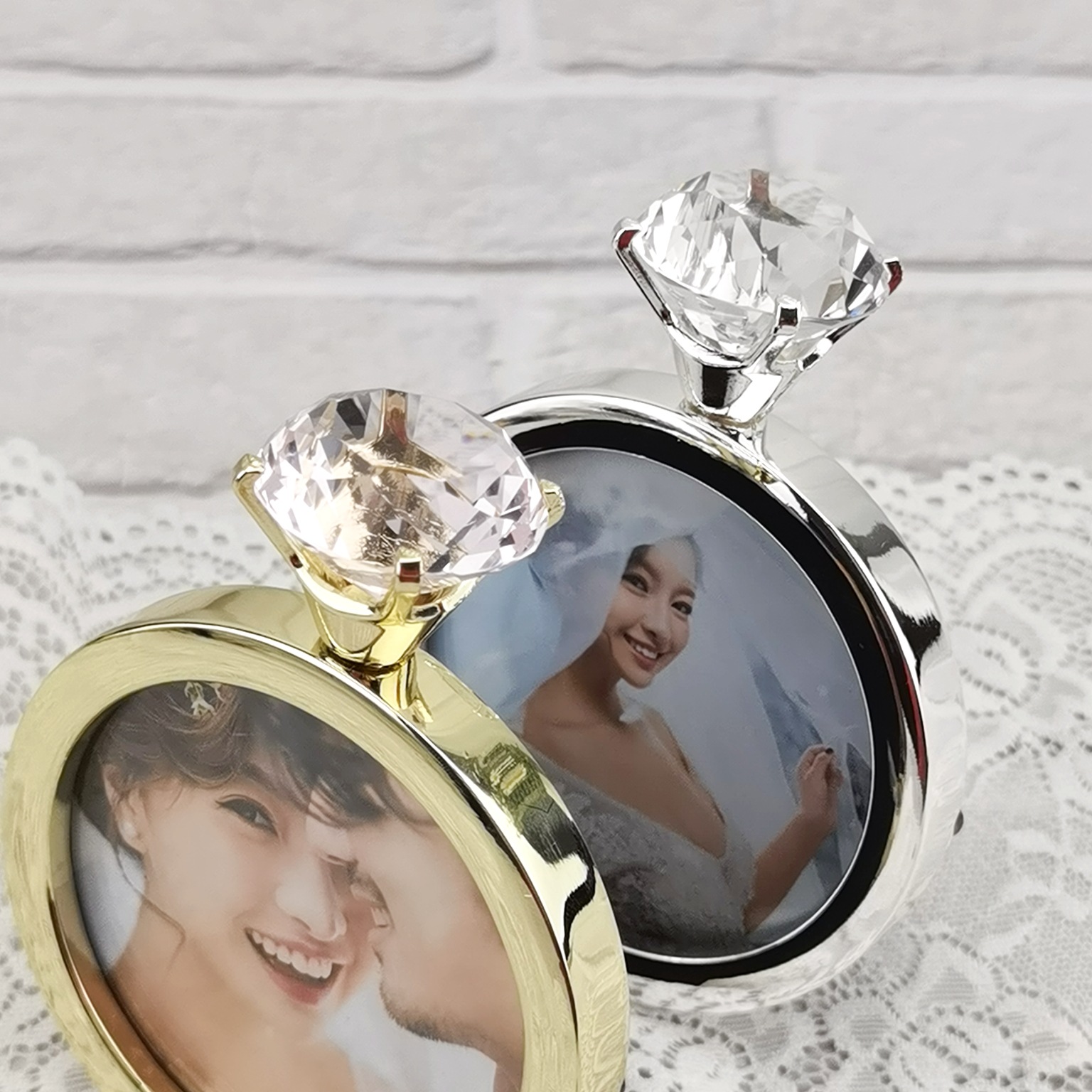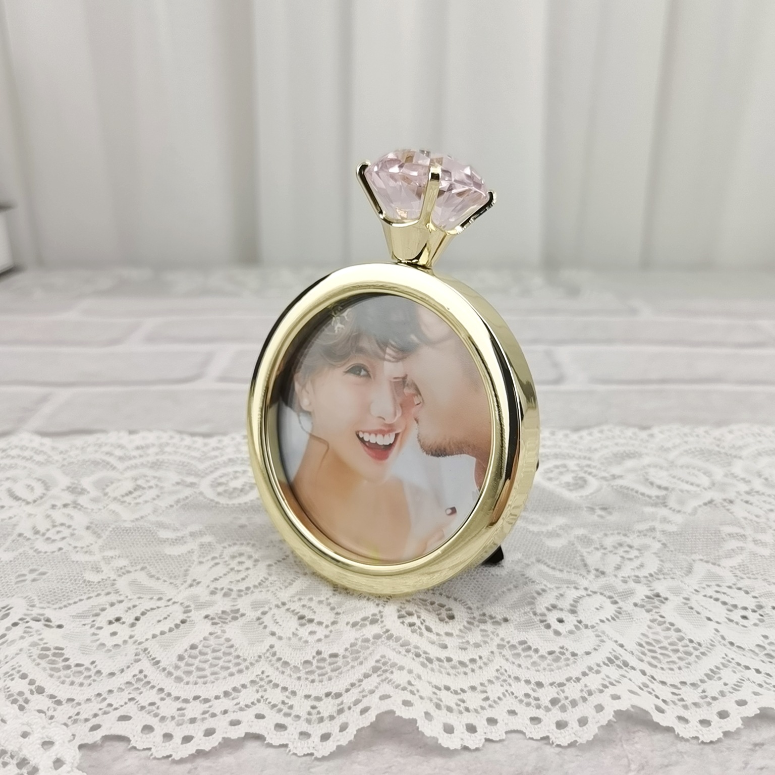 Qiyi 미니 수제 창조적 인 결혼 반지 라운드 전기 도금 금속 웨딩 사진 프레임 제조 업체 도매스토어 가기