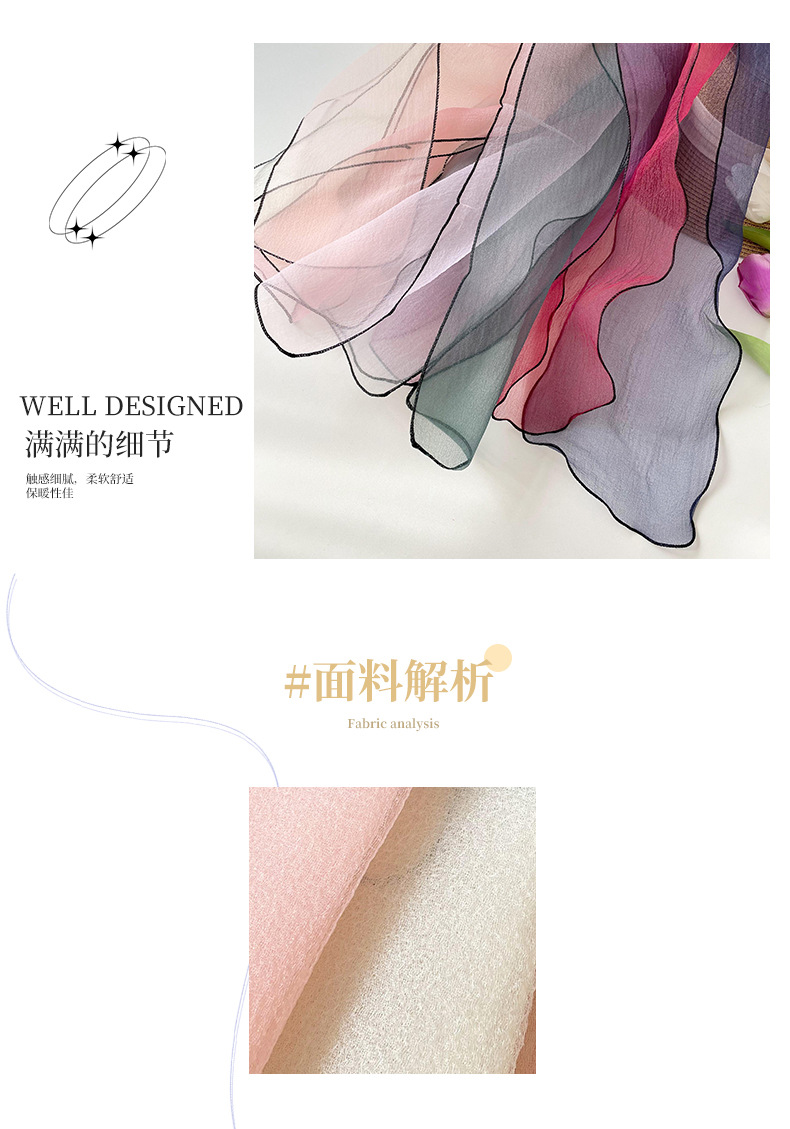 솔리드 컬러 시크 오간자 여름 긴 목 스카프, 가볍고 다재다능한 스카프, 다용도 실크 스카프, 헤어밴드 및 깃발