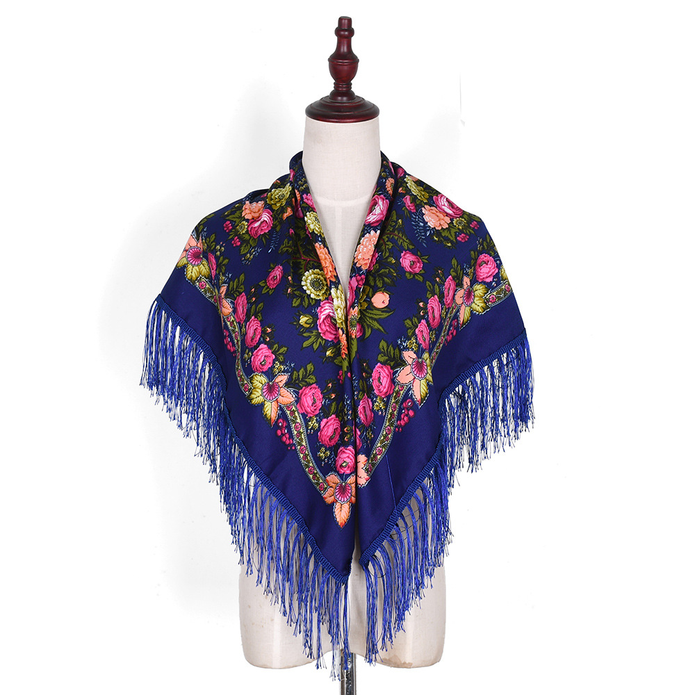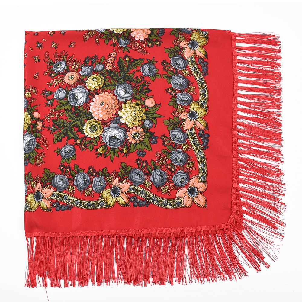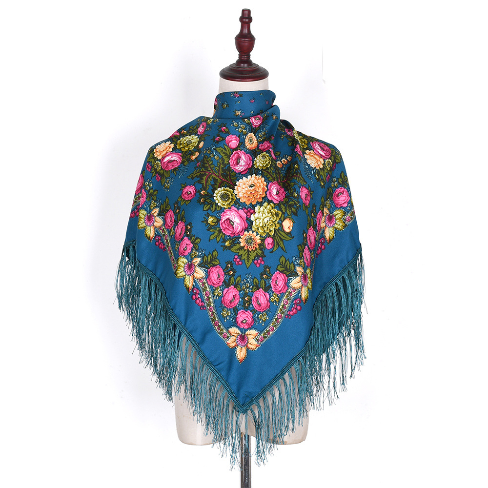 새로운 민족 스타일 술 꽃 인쇄 스카프 봄 가을 겨울 여행 여성 수 놓은 사각형 스카프 에어컨 룸 목도리