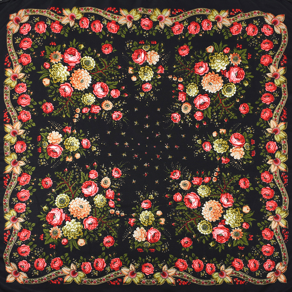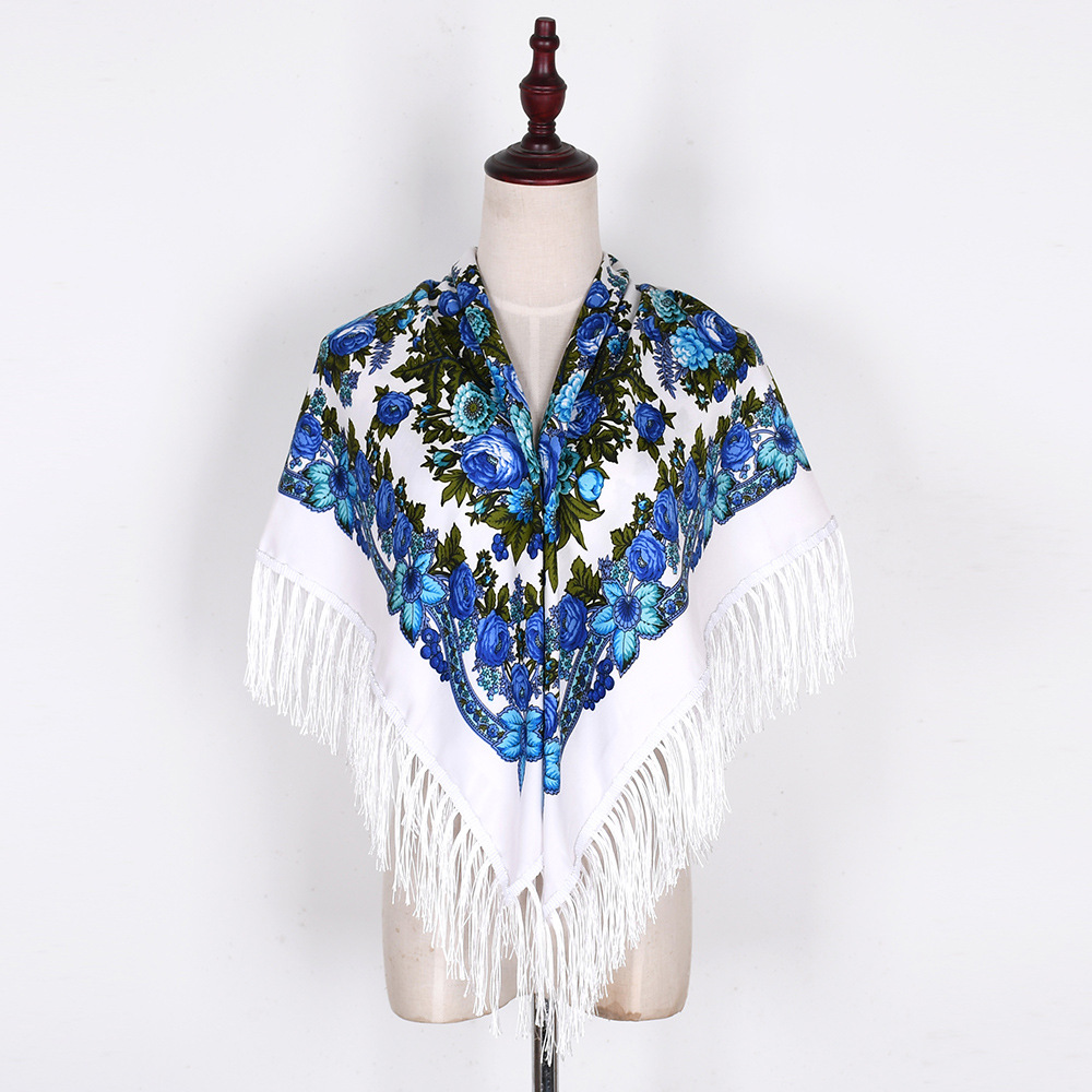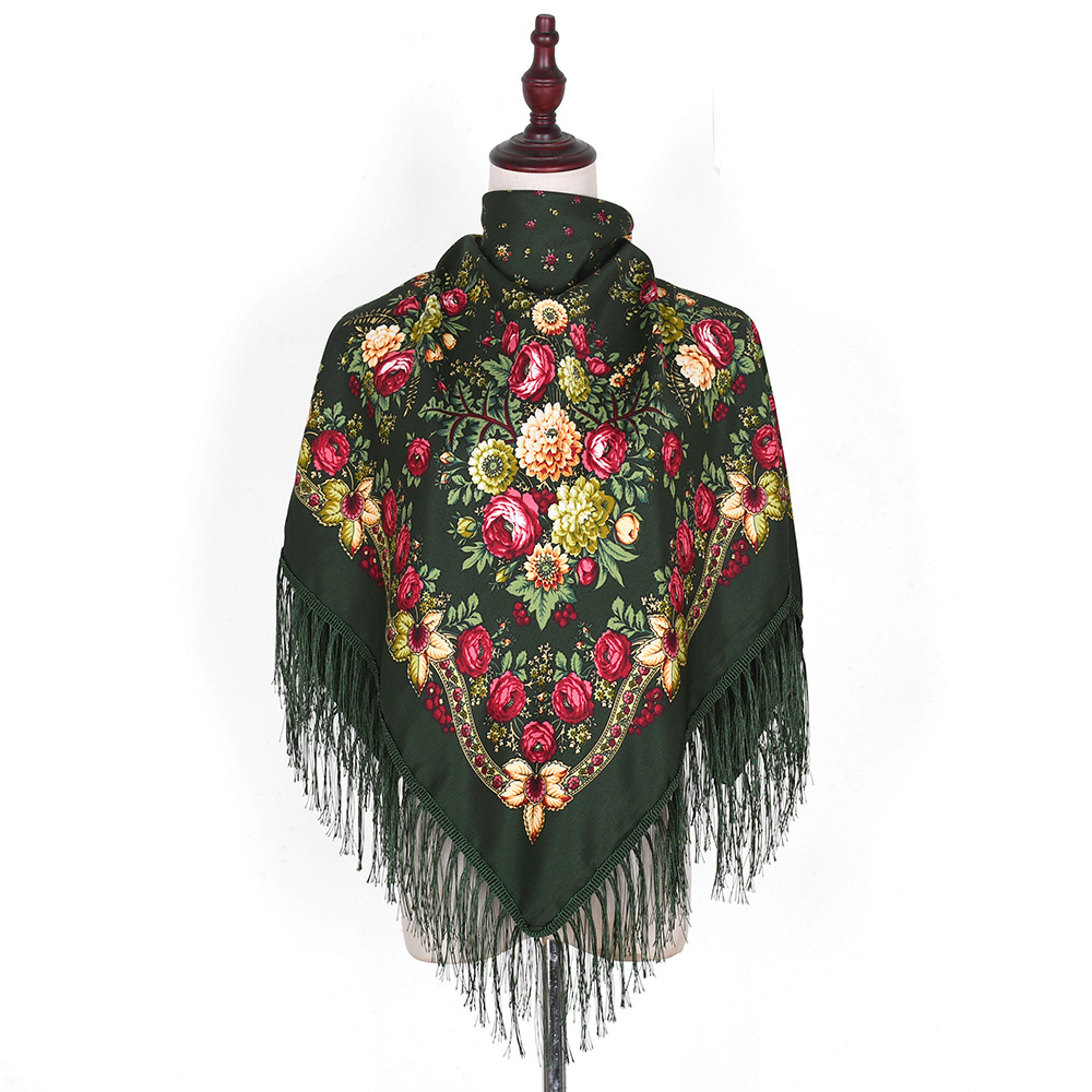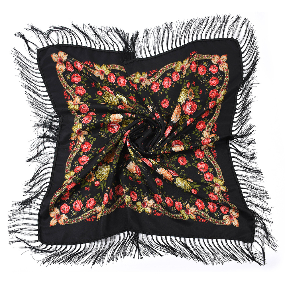 새로운 민족 스타일 술 꽃 인쇄 스카프 봄 가을 겨울 여행 여성 수 놓은 사각형 스카프 에어컨 룸 목도리