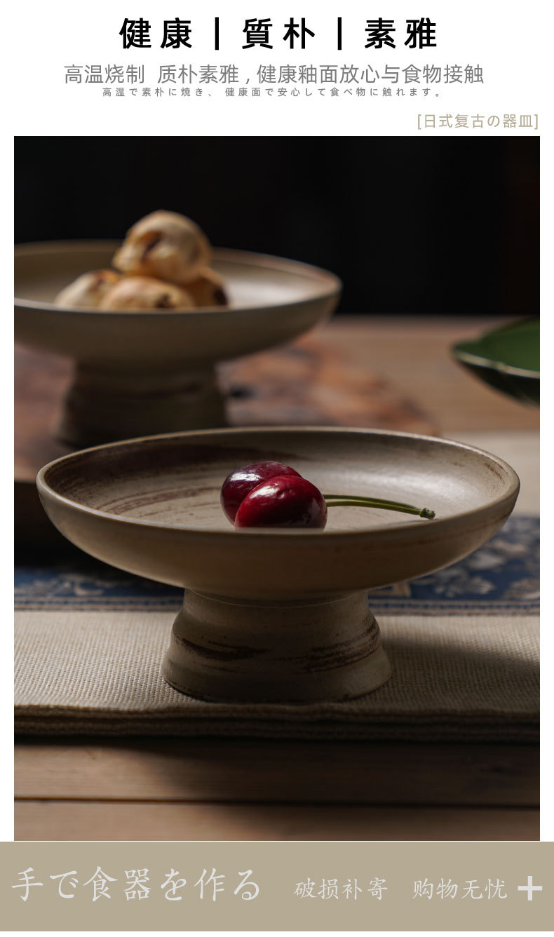 굵은 도자기 중국식 높은 발 다과 접시 복고풍 스타일 다도 선 부처숭배 요리 세라믹 높은 발 말린 과일 스낵 접시스토어 가기