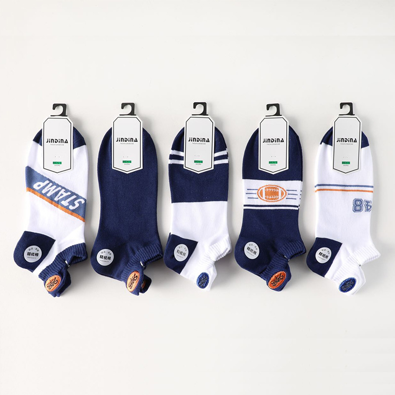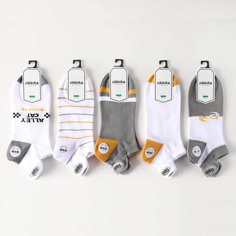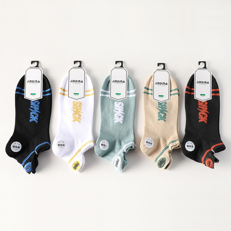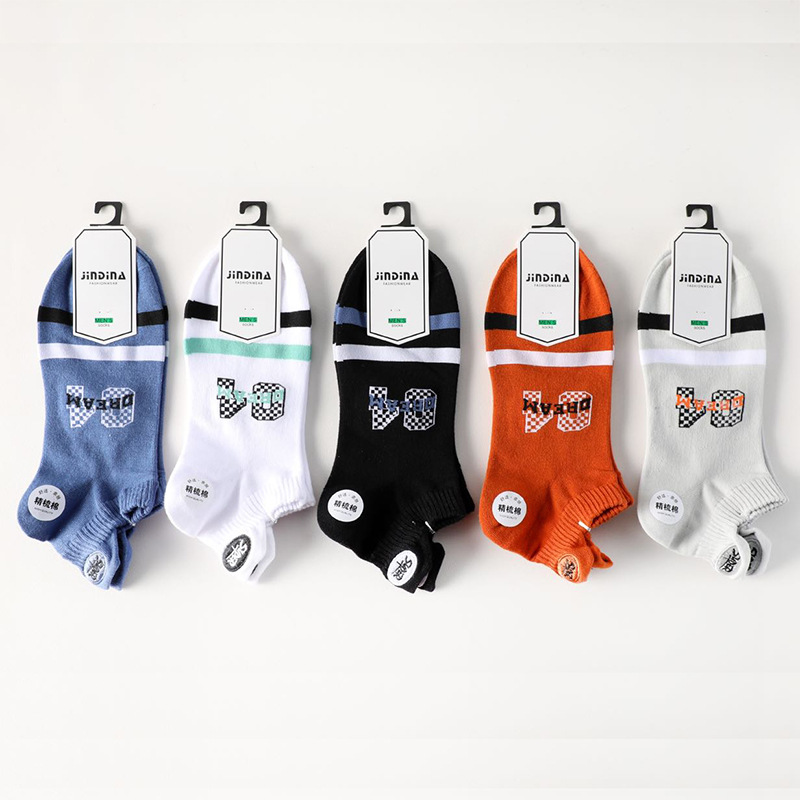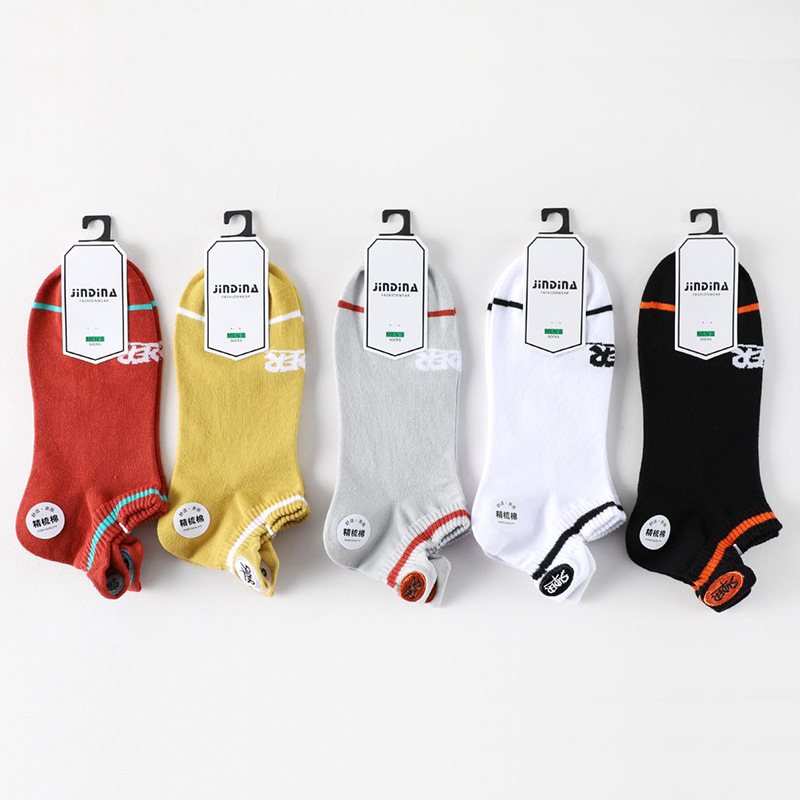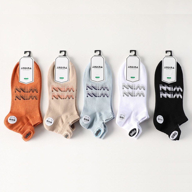 2024 봄과 여름 자수 양말 도매 일본 빗질 면화 남성 보트 양말 금실 자수 얕은 입 조수 양말