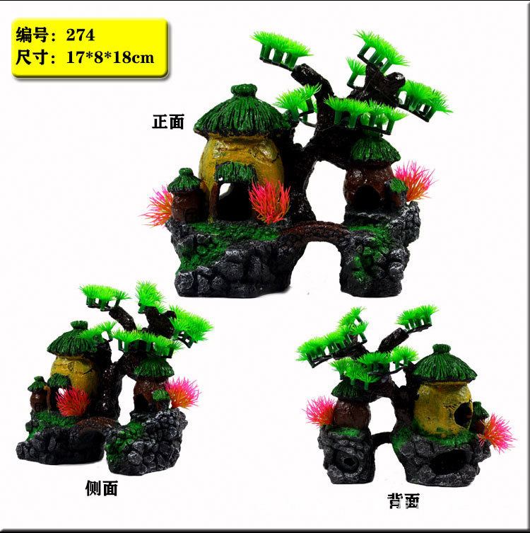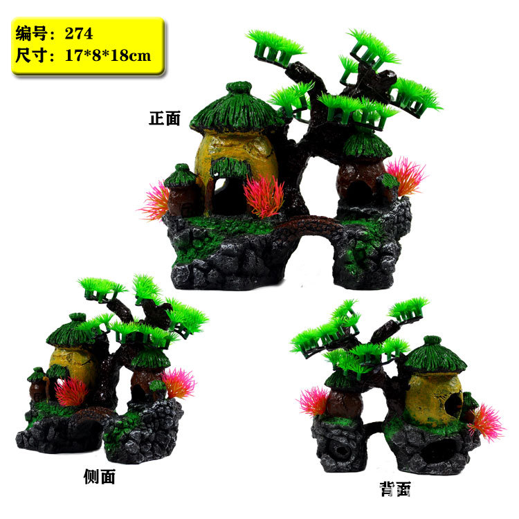 어항 장식용 인공석 작은 장식품, 수지 집 모형, 은신처, 인조 수초 어항 장식