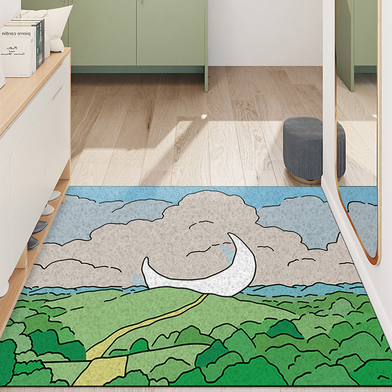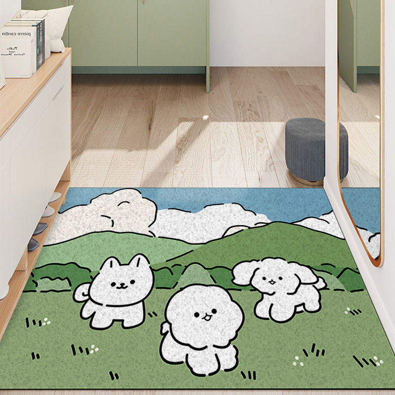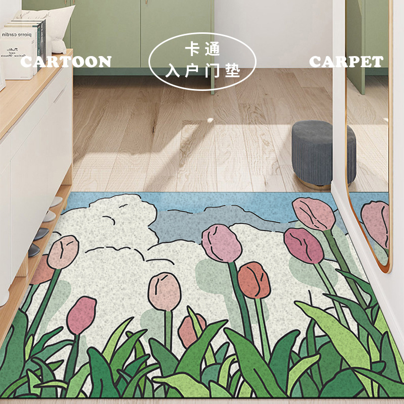 만화 유화 실크 링 도어 매트를자를 수 있습니다 PVC 바닥 매트 가정용 미끄럼 방지 바닥 매트 베란다 카펫