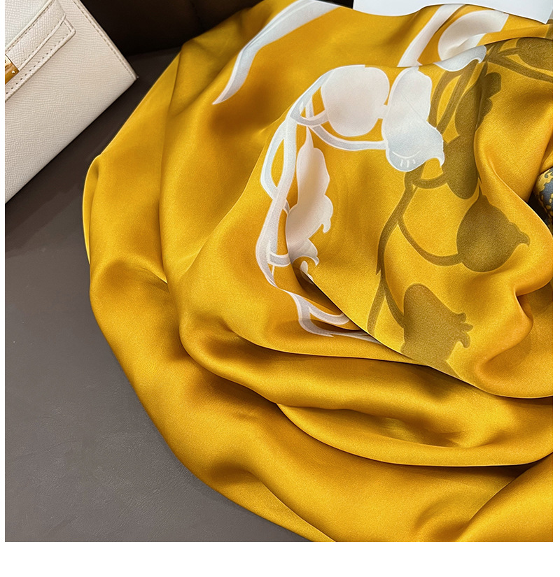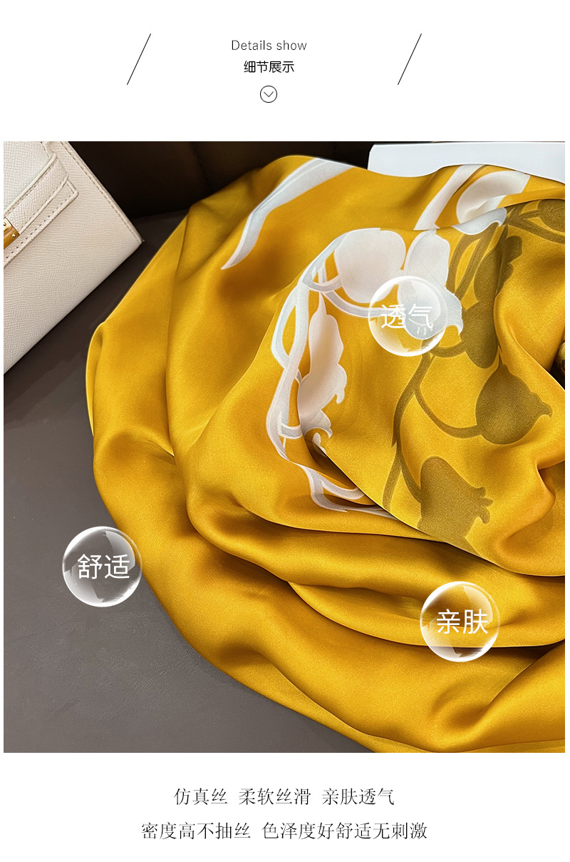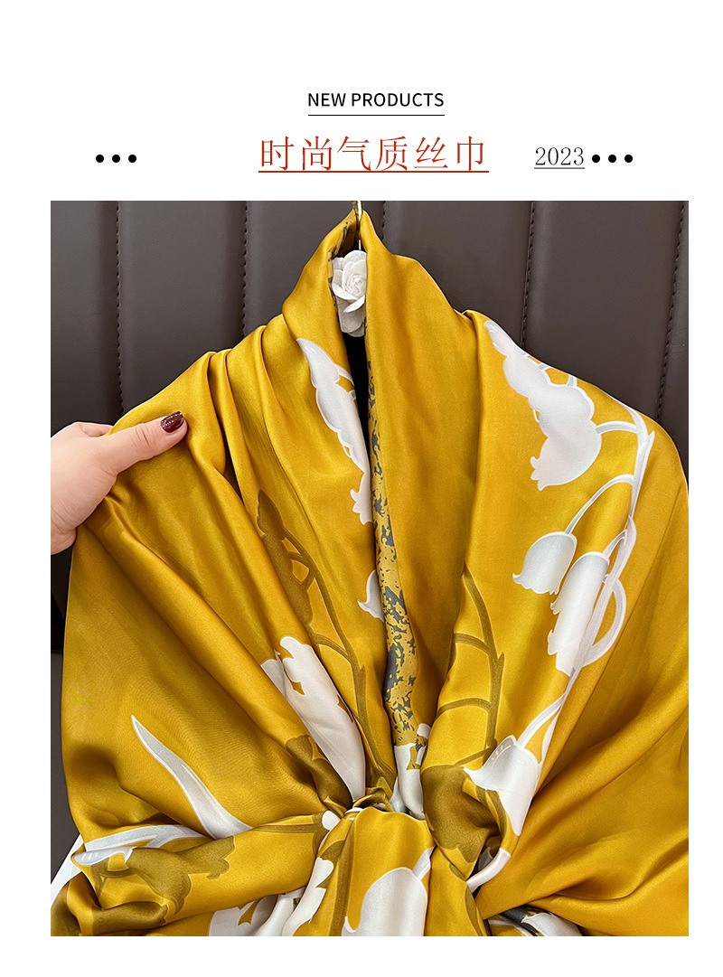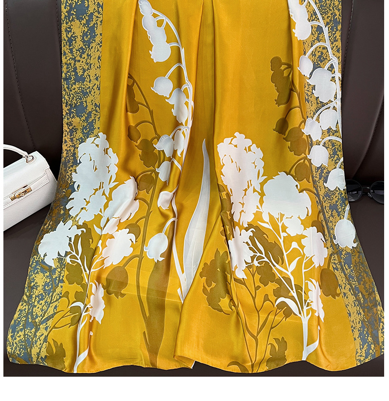 한국 스타일 라이트 럭셔리 팰리스 스타일 실크 스카프 여성용 모든 매치 봄과 여름 세련된 바람 벨 플라워 스카프 외부 이중 사용 긴 스카프스토어 가기