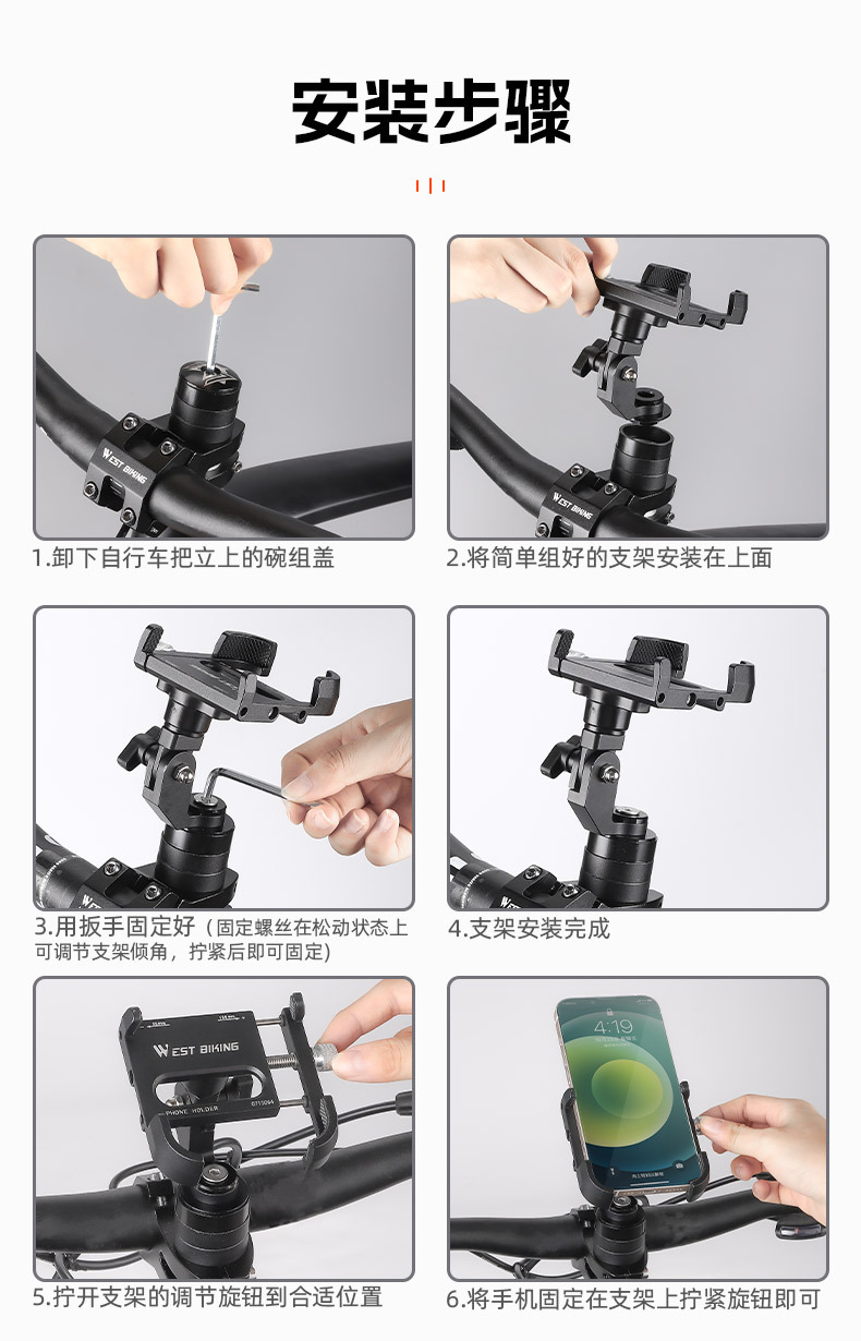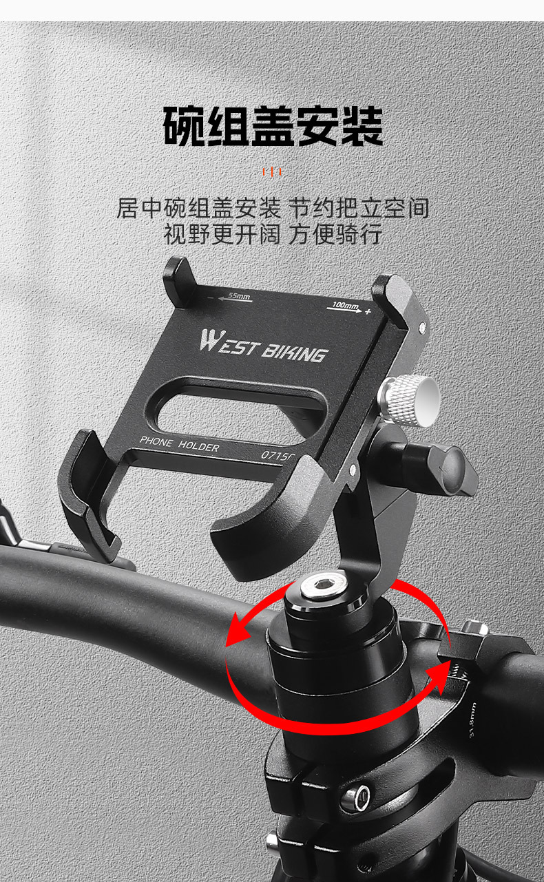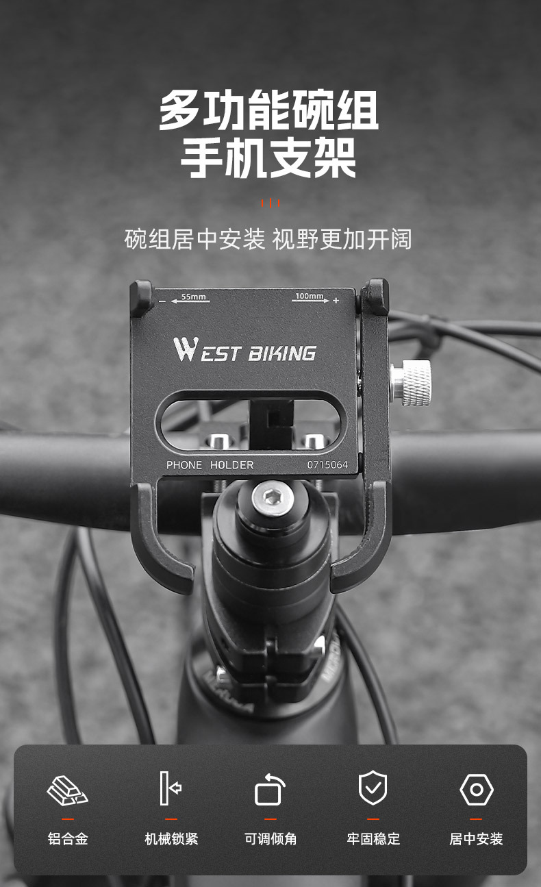 WEST BIKING 자전거 볼 세트 휴대 전화 홀더 알루미늄 합금 회전 산악 자전거 사이클링 휴대 전화 홀더스토어 가기