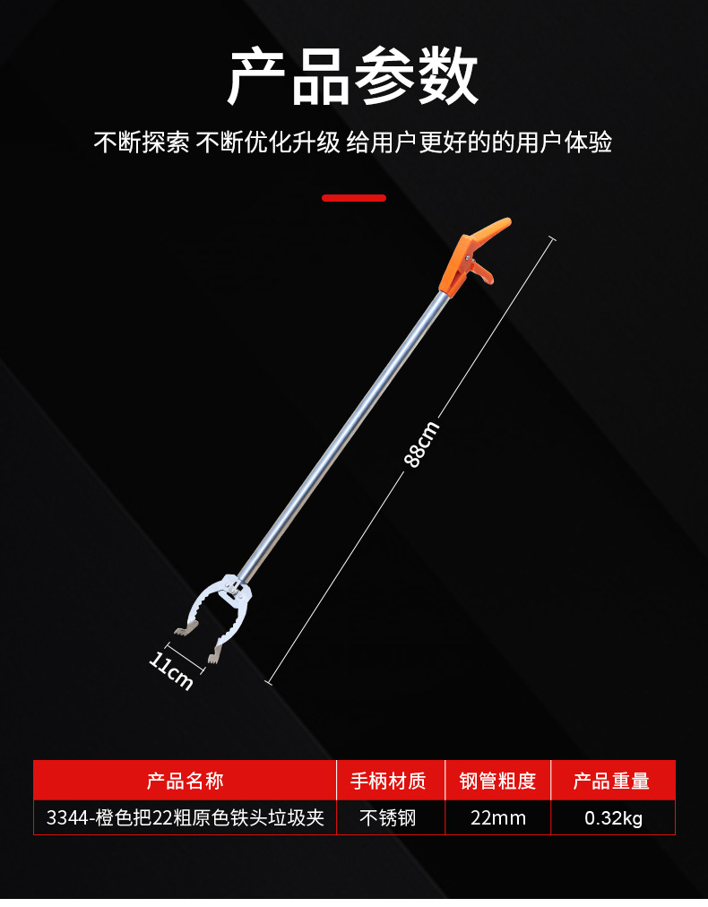 쓰레기 픽업 위생 가중 오렌지 22mm 두께 스테인레스 스틸 파이프 원색 철 헤드 쓰레기 클립 New스토어 가기