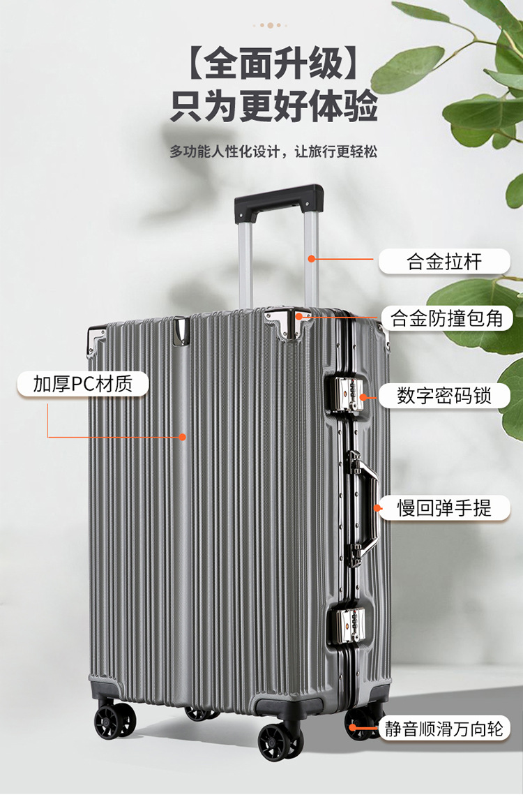 국경을 넘는 알루미늄 프레임 여행가방 24인치 회전식 바퀴 비밀번호 트롤리 가방 여성용 고급 비즈니스 기내 여행가방 20inch스토어 가기