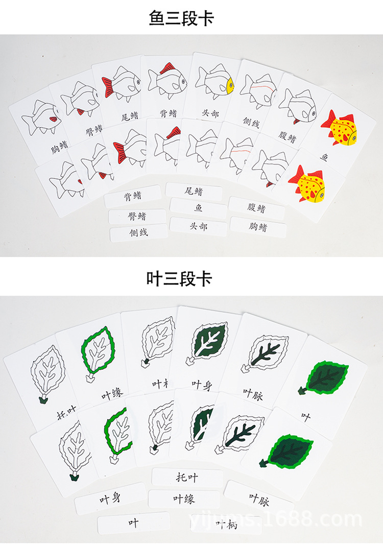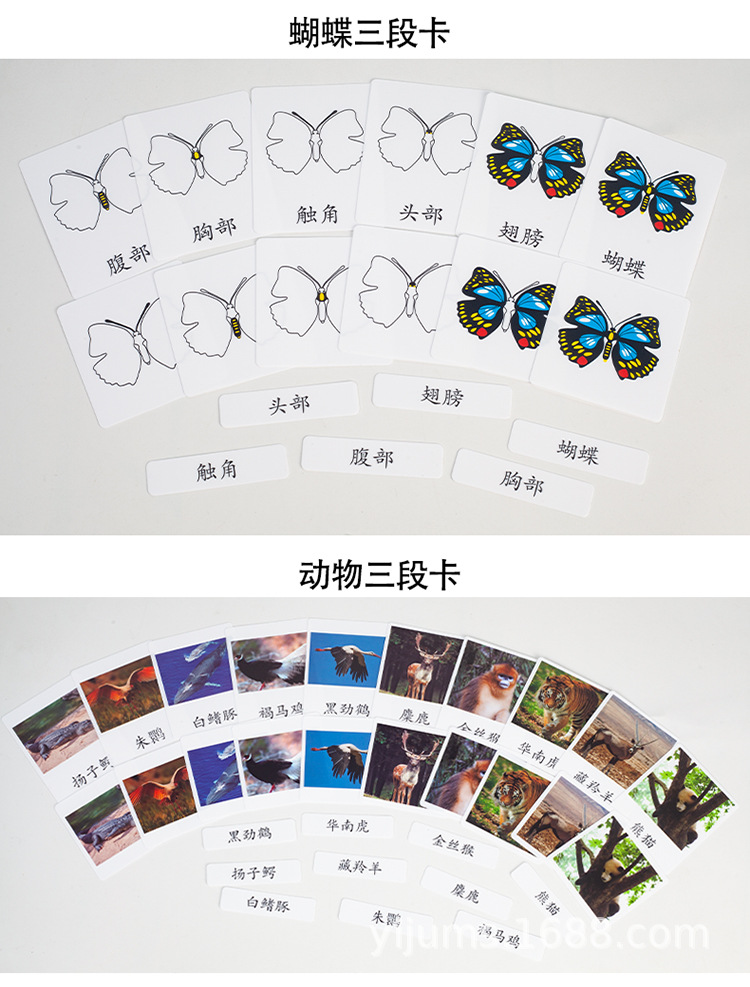 몬테소리 유아 교육 동물 및 식물 3 세그먼트 카드 3 부분인지 카드 3 세그먼트 카드 케이스 PVC 방수