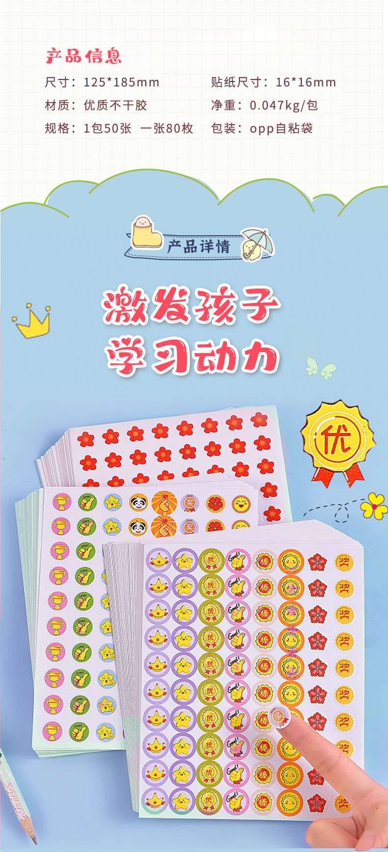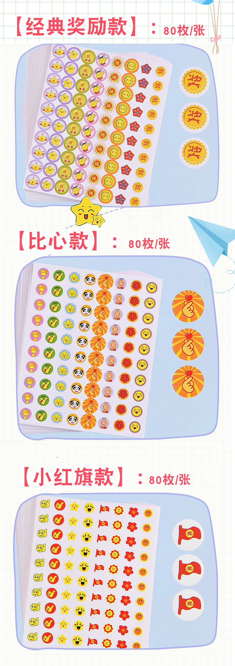 어린이 보상 스티커 교사 초등학교 어린이 유치원 작은 빨간 꽃 칭찬 스티커 만화