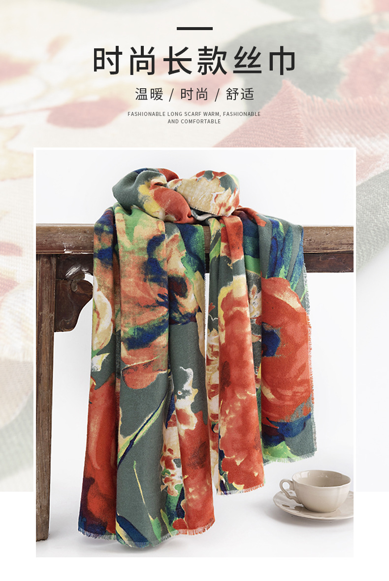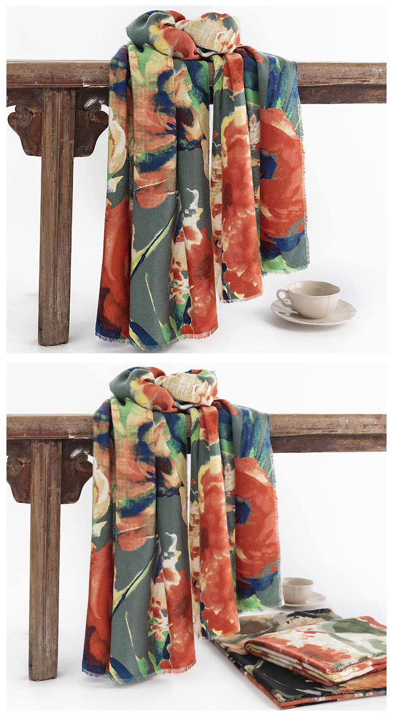 모조 캐시미어 스카프 여성용 인쇄 우아한 중국 스타일 따뜻한 숄 고급 유행 통근 목 보호 방한 스카프스토어 가기