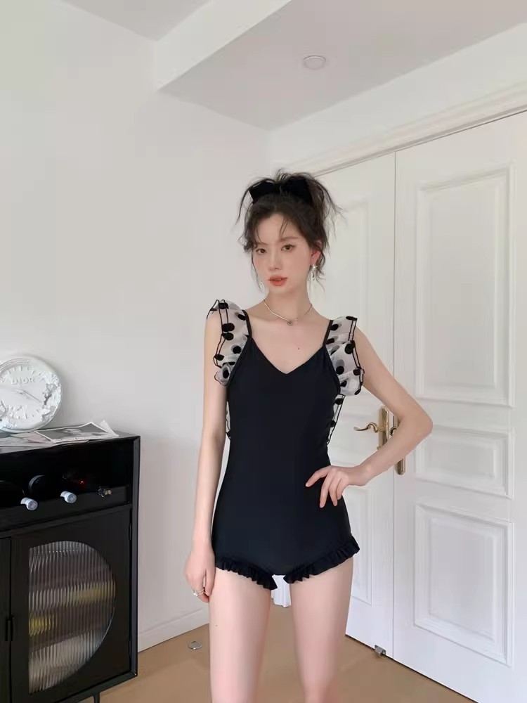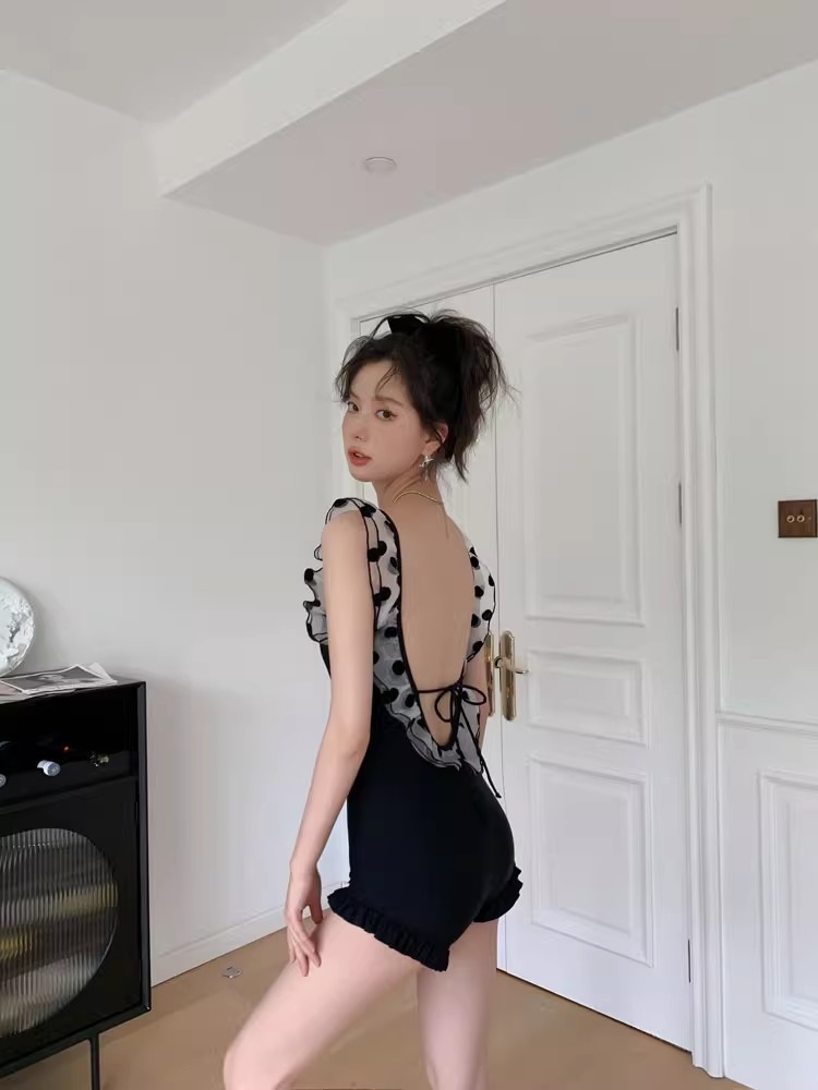 Haimeyi 2023 새로운 간단한 복고풍 등이없는 우아한 슬림 배꼽 덮음 원피스 수영복 여성용 온천 수영복스토어 가기