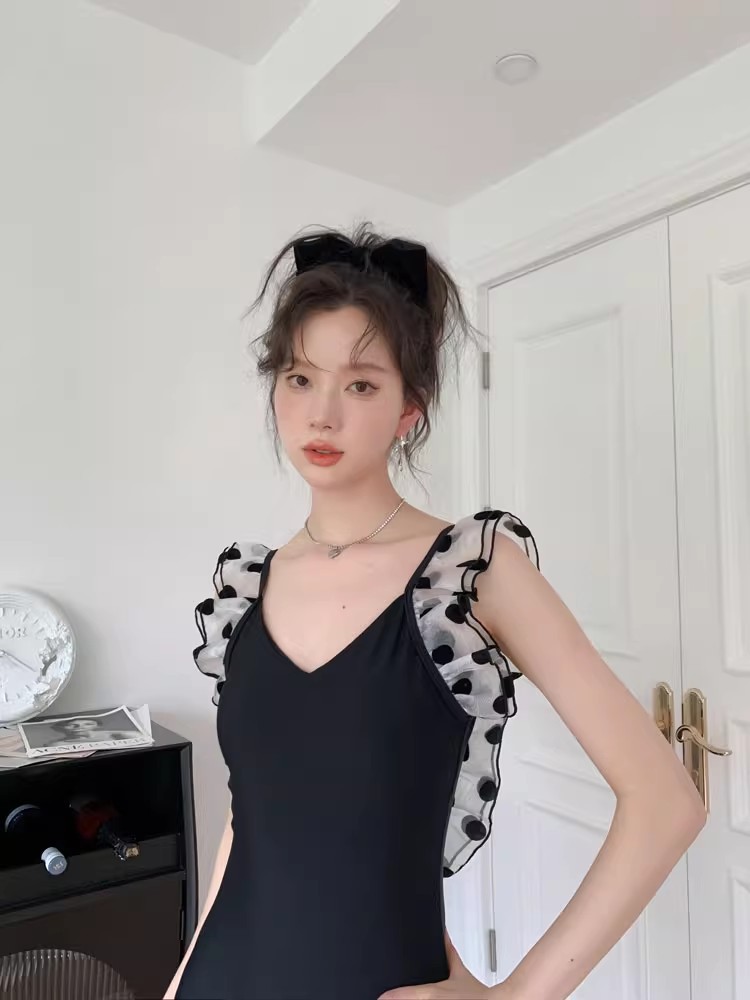 Haimeyi 2023 새로운 간단한 복고풍 등이없는 우아한 슬림 배꼽 덮음 원피스 수영복 여성용 온천 수영복