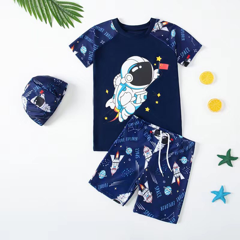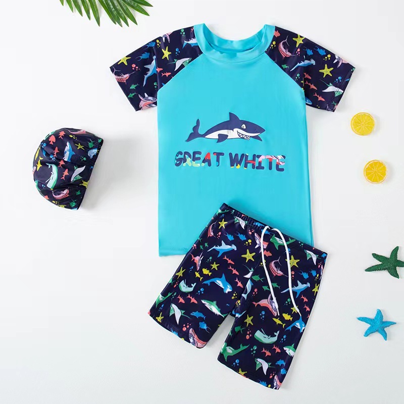 소녀와 소년을 위한 아동 수영복, 새로운 스타일의 스플릿 학생용 아기 수영 바지, 수영 모자, 소년 수영복 도매스토어 가기