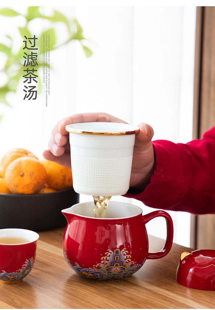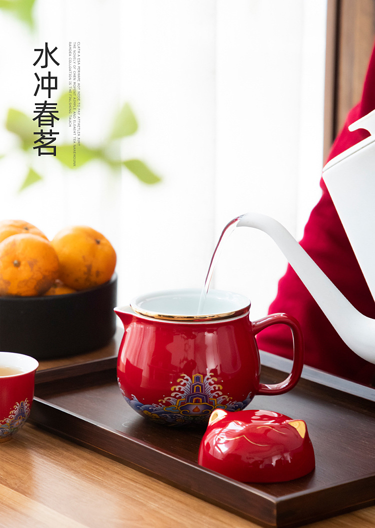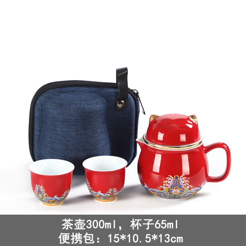 • 럭키 고양이 빠른 손님 두 컵의 냄비 컵-레드