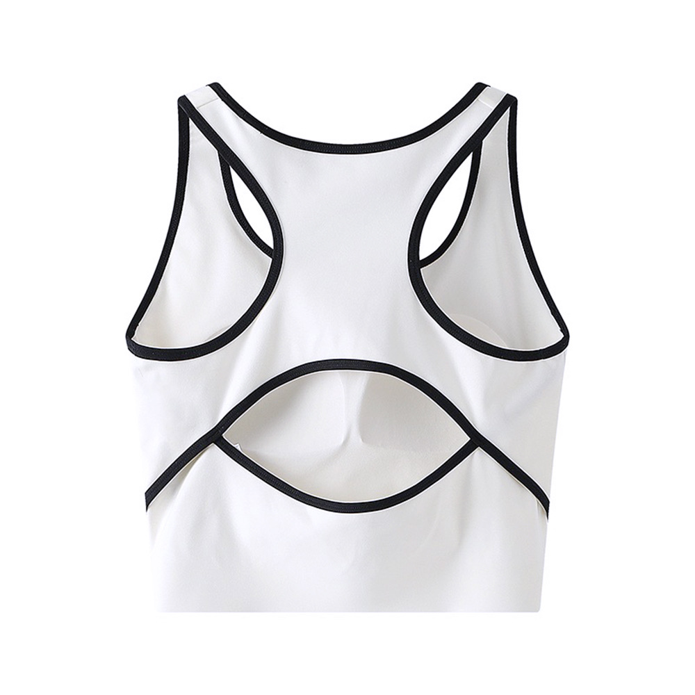 뜨거운 소녀 스포츠 대비 색상 조끼 여자의 내부 새로운 미국 등이없는 조끼 겉옷 피트니스 요가 조끼 가슴 패드스토어 가기