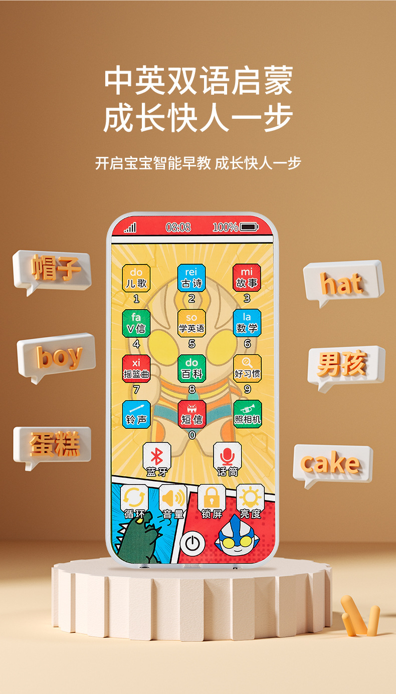 국경 간 어린이 장난감 시뮬레이션 터치 스크린 휴대 전화 아기 교육 조기 교육 전화 이야기 마이크 스마트 토이