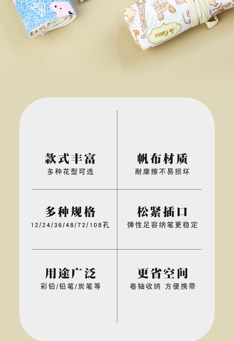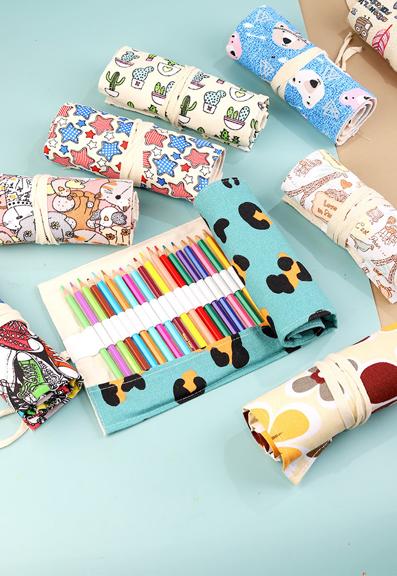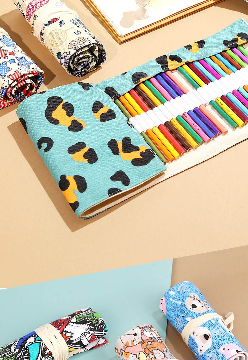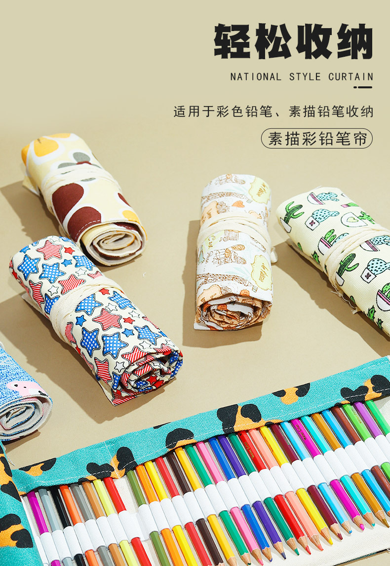소년과 소녀를위한 컬러 대용량 수제 캔버스 펜 커튼 페인팅 특수 롤 연필 가방 스케치 컬러 연필 보관 가방스토어 가기