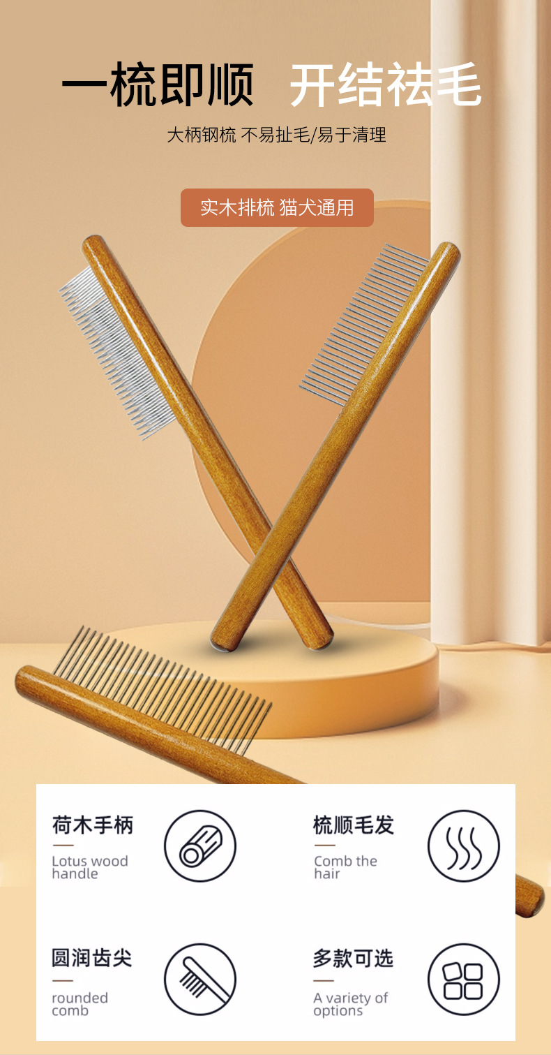 스테인리스 바늘과 나무 손잡이가 있는 향기나는 펫 빗, 고양이와 강아지의 엉킨 털을 풀어주는 빗, 정전기 방지 및 벼룩 제거 브러쉬스토어 가기