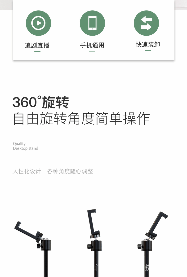 데스크탑 휴대 전화 라이브 방송 브래킷 팬 틸트 360 회전 리프팅 각도 조절 브래킷 휴대용 게으른 셀카스토어 가기