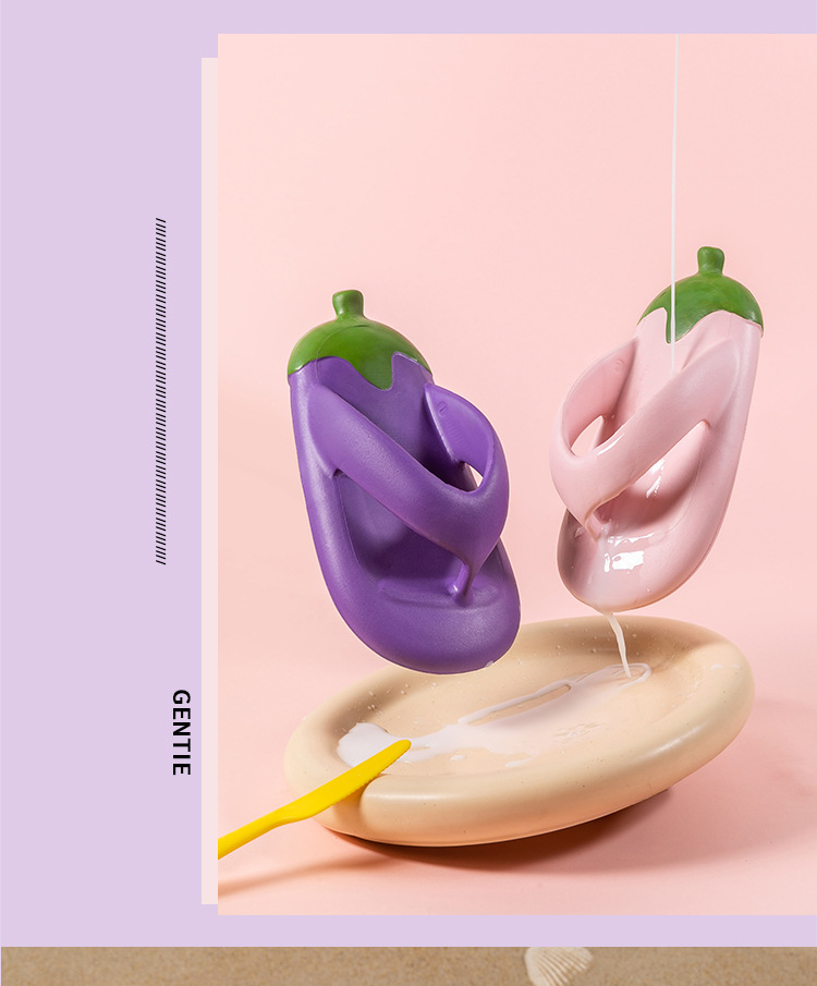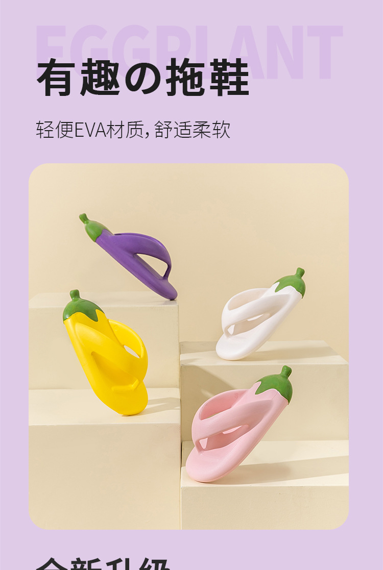남성과 여성을위한 가지 슬리퍼 여름 만화 실내 홈 미끄럼 방지 목욕 플립 플롭 방 두꺼운 바닥 똥 느낌 소녀 샌들