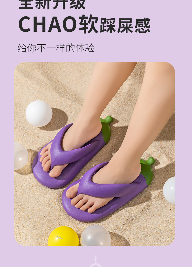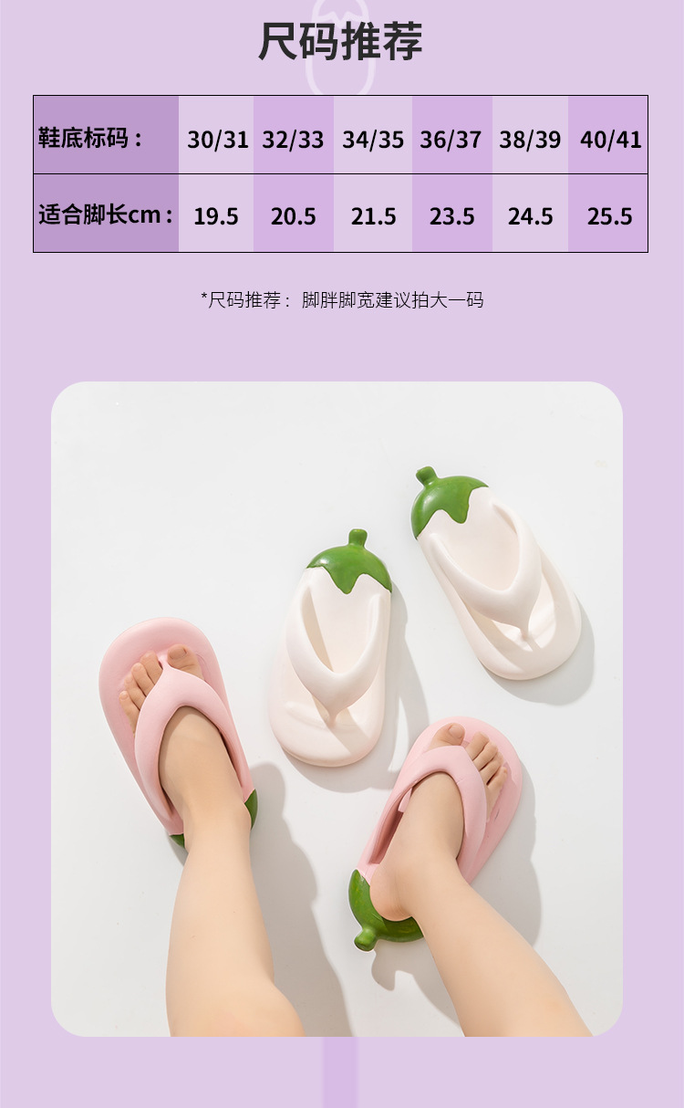 남성과 여성을위한 가지 슬리퍼 여름 만화 실내 홈 미끄럼 방지 목욕 플립 플롭 방 두꺼운 바닥 똥 느낌 소녀 샌들스토어 가기