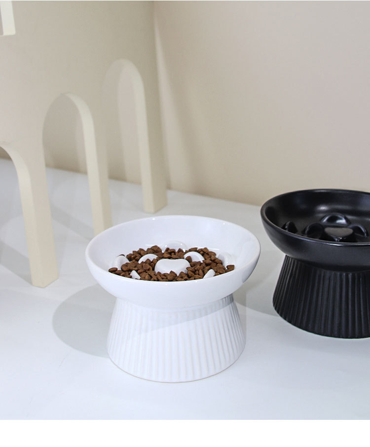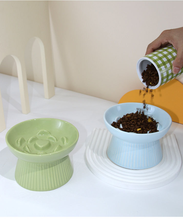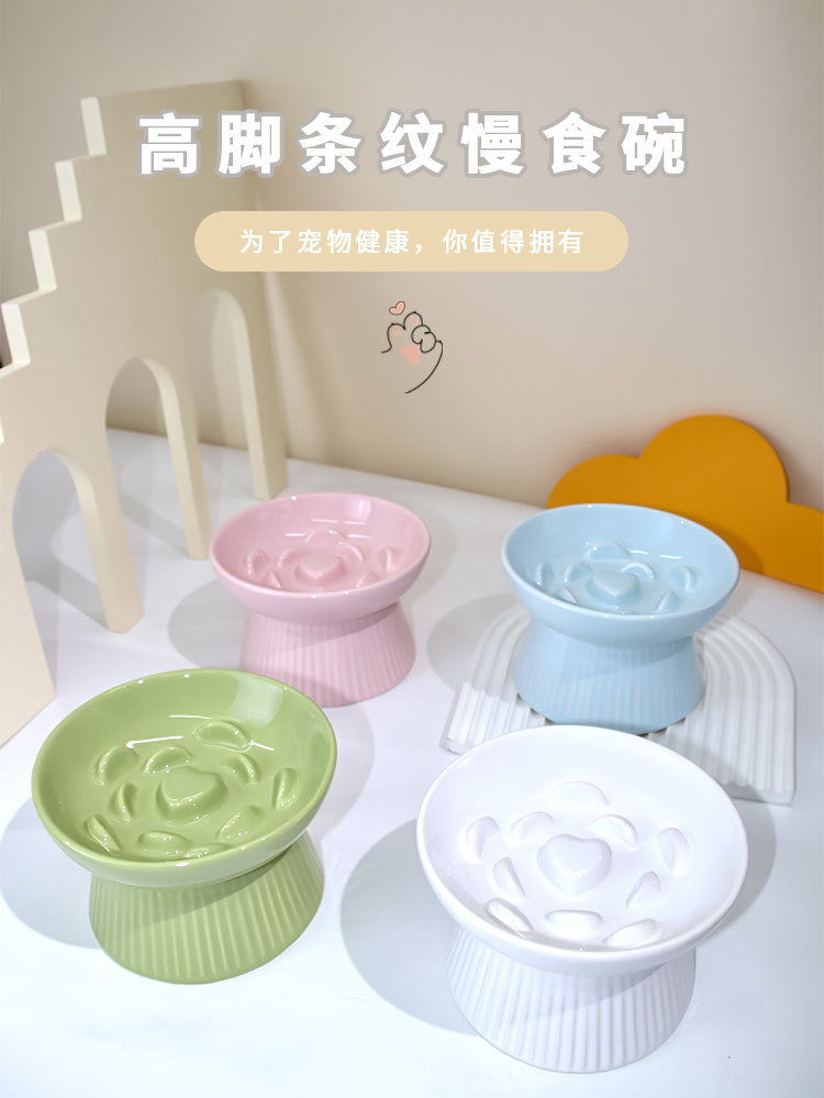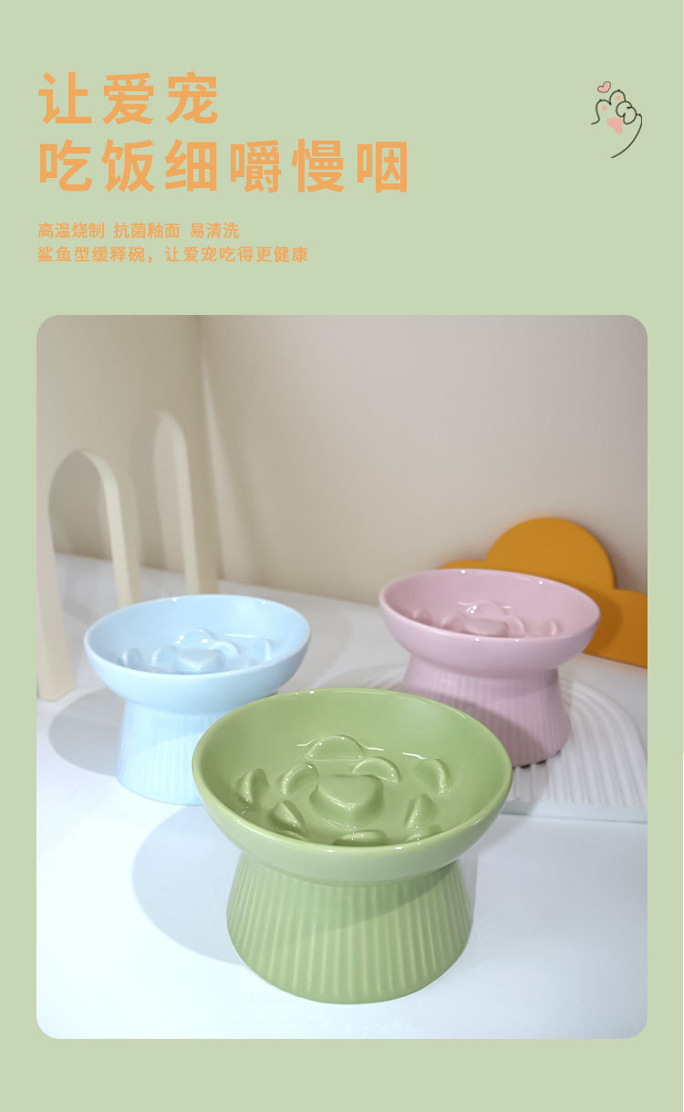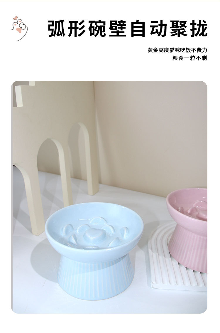 세라믹 애완 동물 고양이 그릇 개 그릇 중소 개 고양이 질식 방지 슬로우 푸드 그릇 전복 방지 높은 목 보호 밥 그릇스토어 가기
