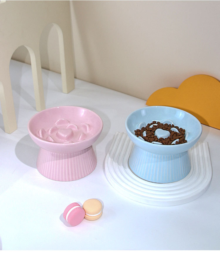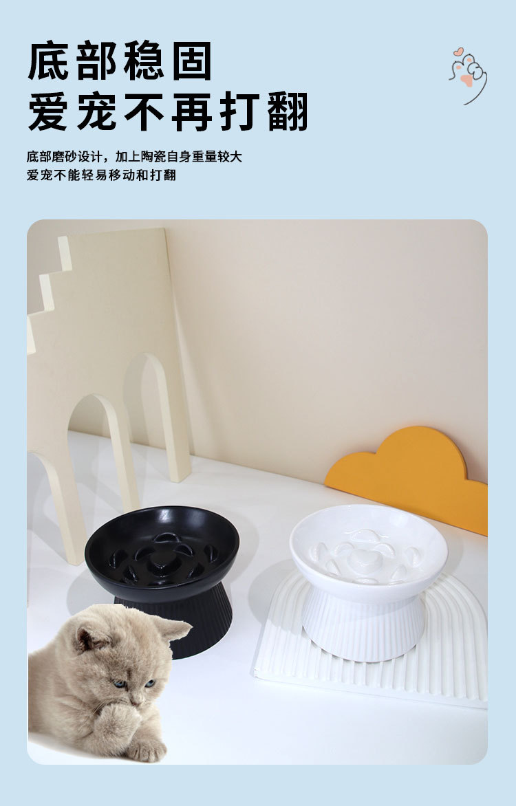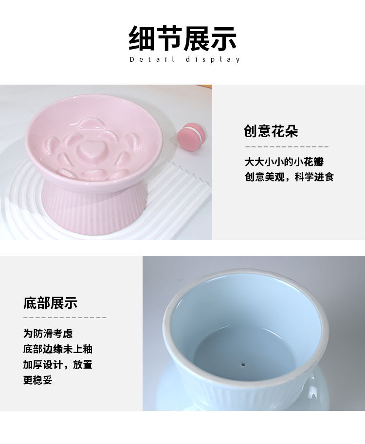 세라믹 애완 동물 고양이 그릇 개 그릇 중소 개 고양이 질식 방지 슬로우 푸드 그릇 전복 방지 높은 목 보호 밥 그릇