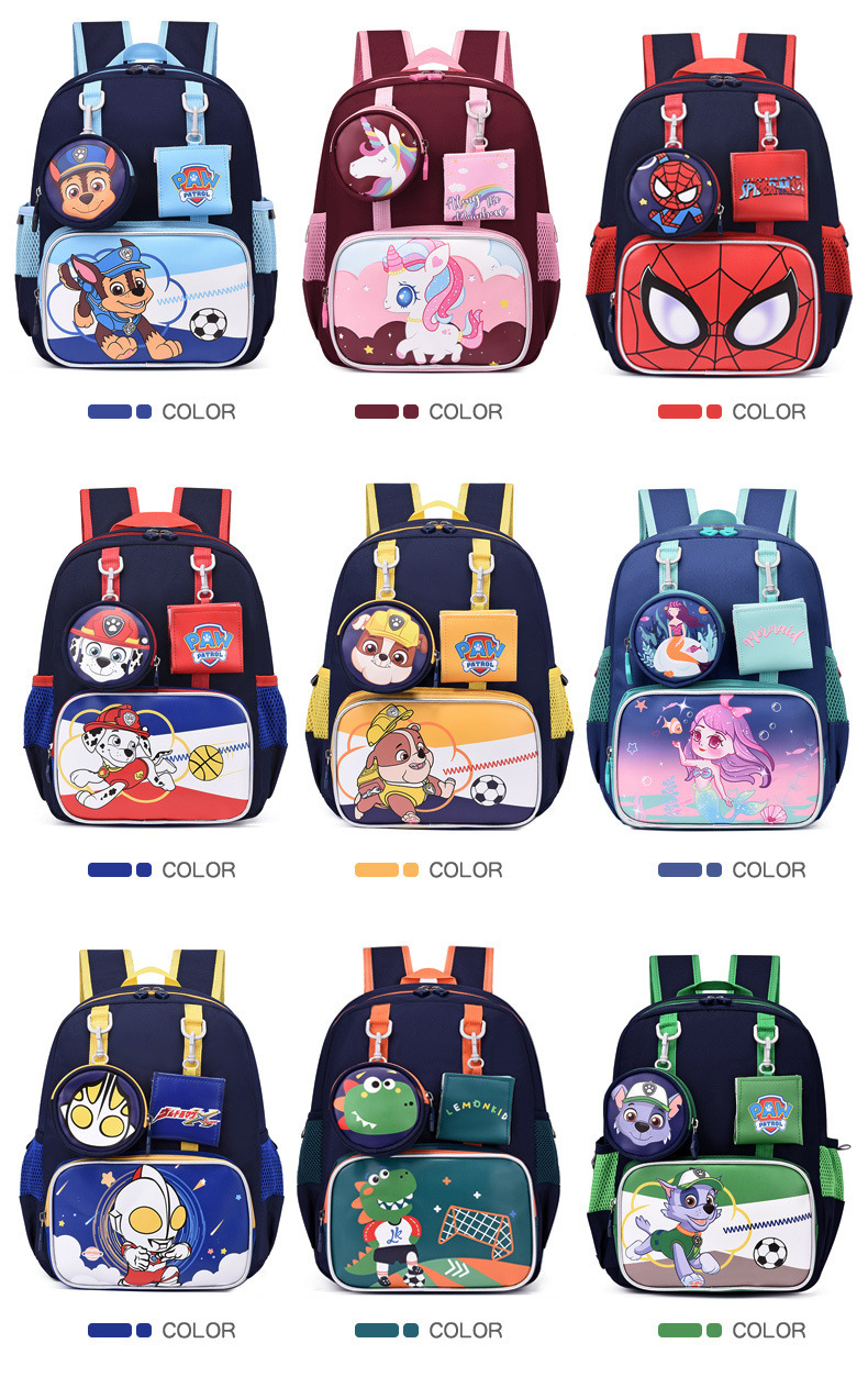 어린이 책가방, 유치원, 초등학생 배낭, 핸드백, 만화 스파이더맨, 파우 파우 팀 포니 배낭스토어 가기