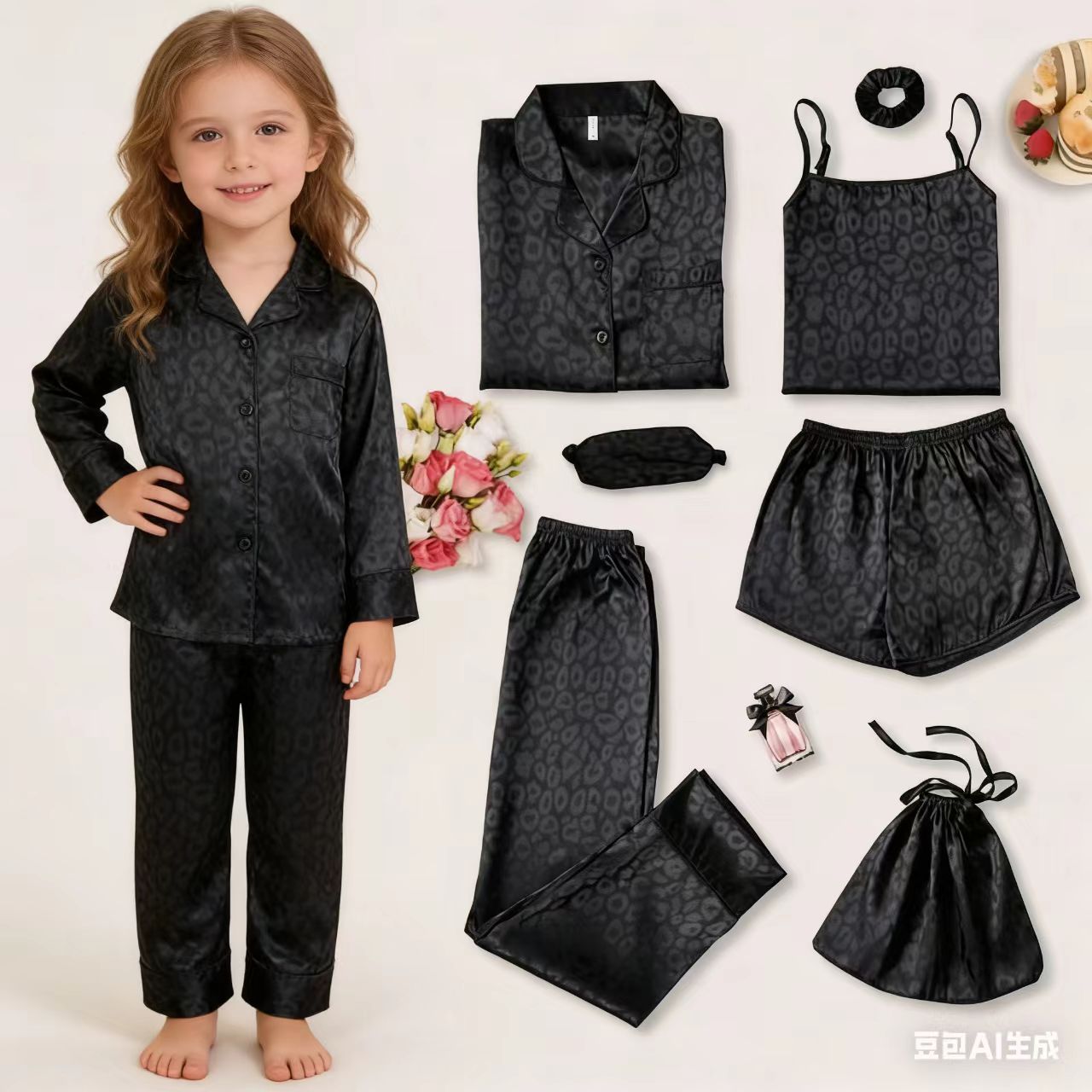 여아 어린이 잠옷 어린이 봄과 가을 7 종 세트 스트라이프 아이스 실크 가정복 느슨한 러시아 얇은 잠옷